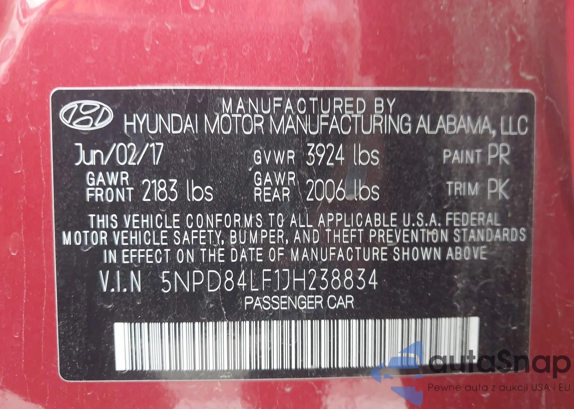 LOT: 42332504 VIN: 5NPD84LF1JH238834