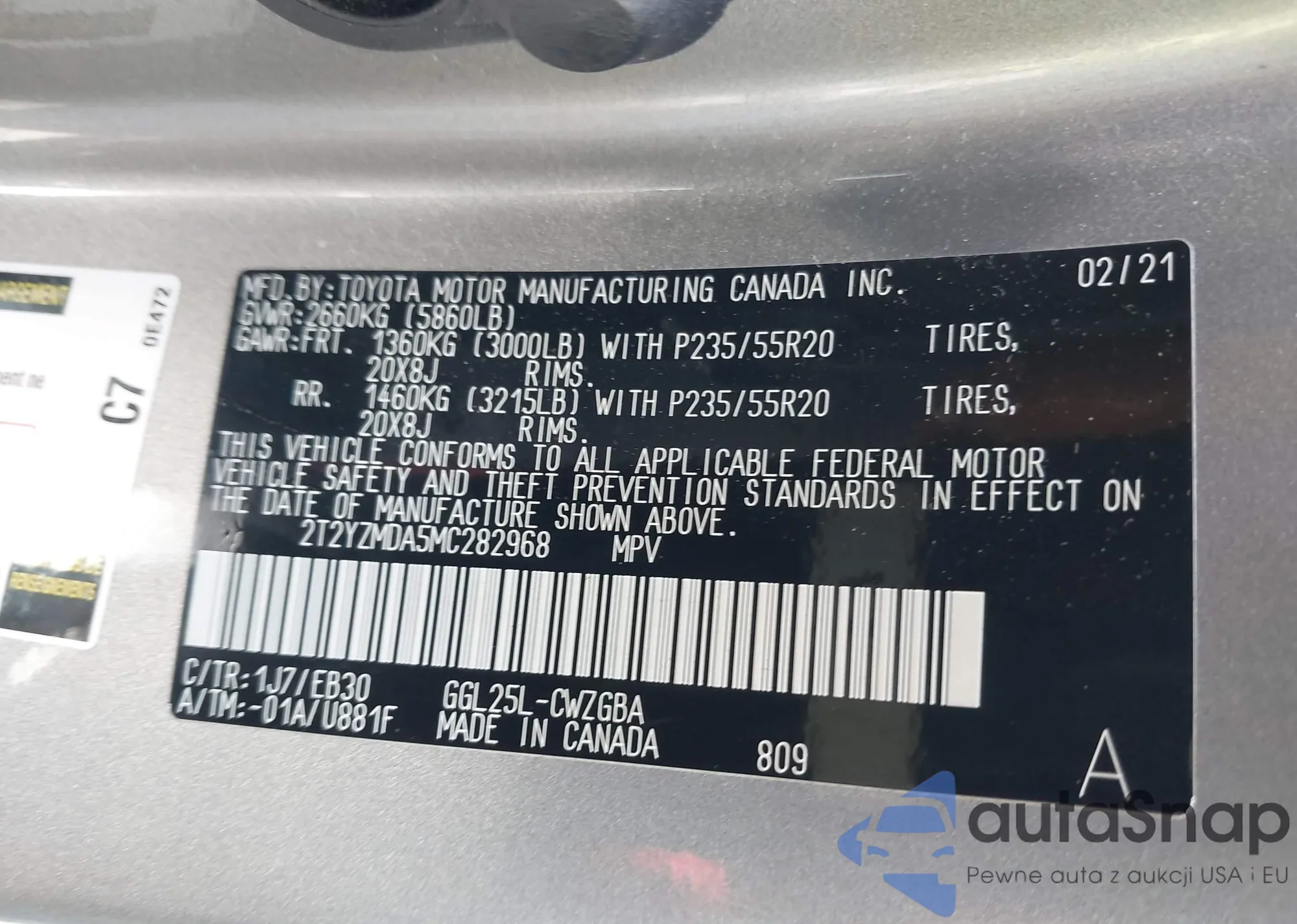 • VIN 2T2YZMDA5MC282968