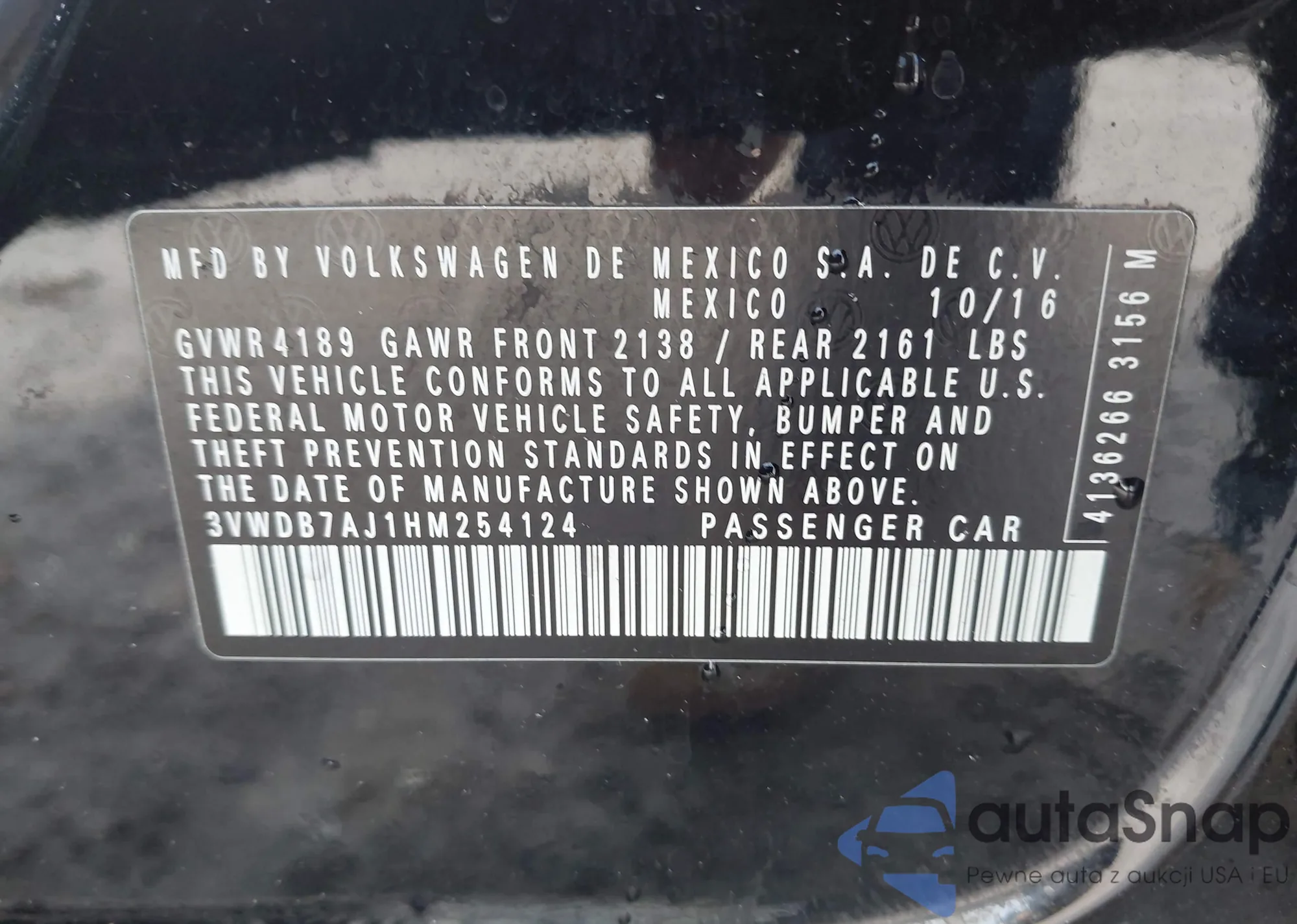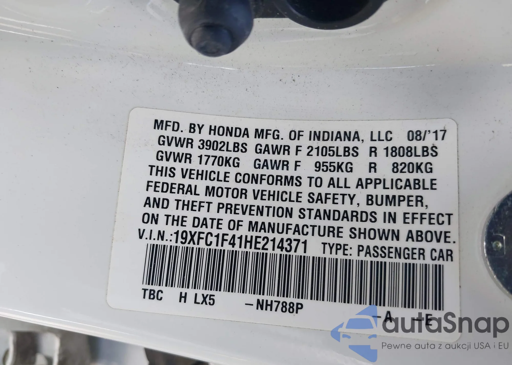 • VIN WBA8A9C57JAH13310