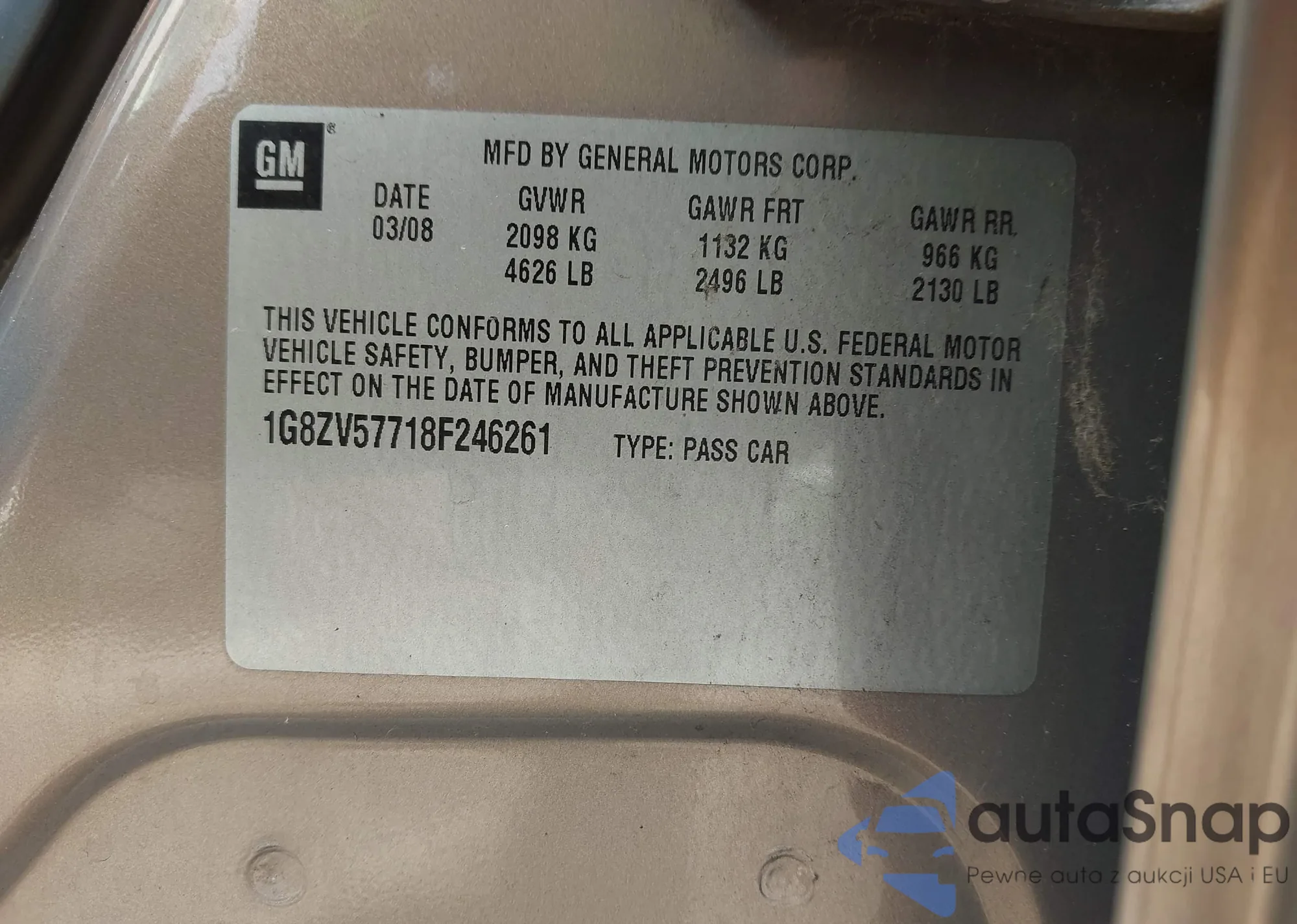 • VIN 1G8ZV57718F246261