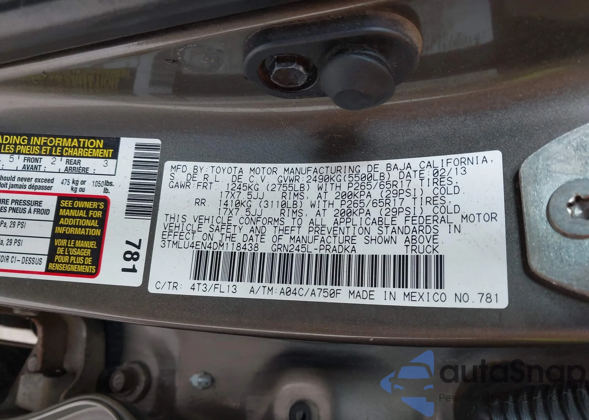 • VIN 5TBRU34136S478685