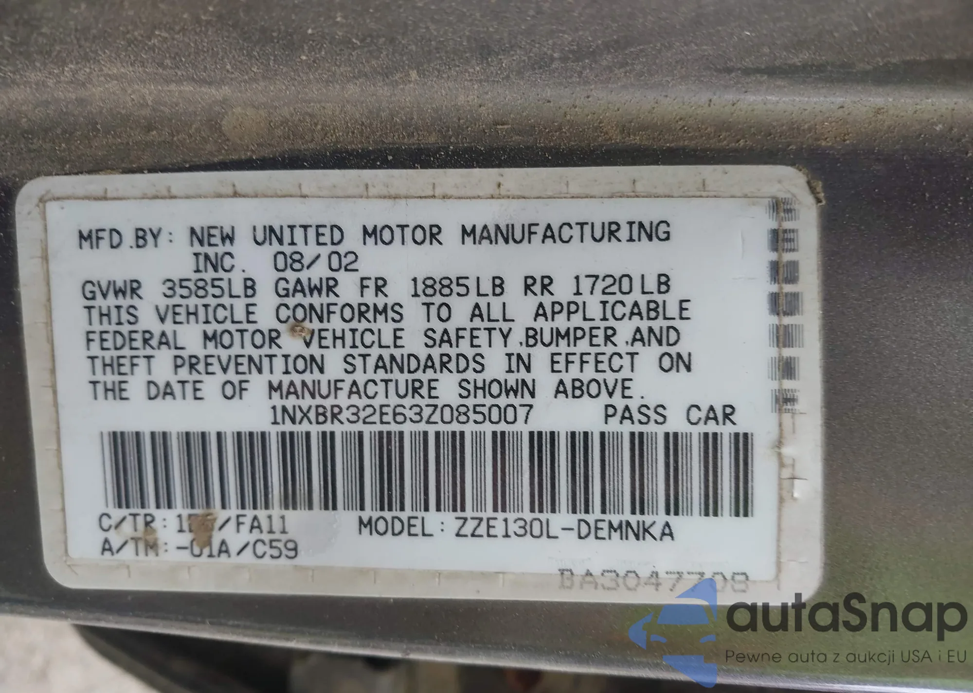 • VIN 1NXBR32E63Z085007
