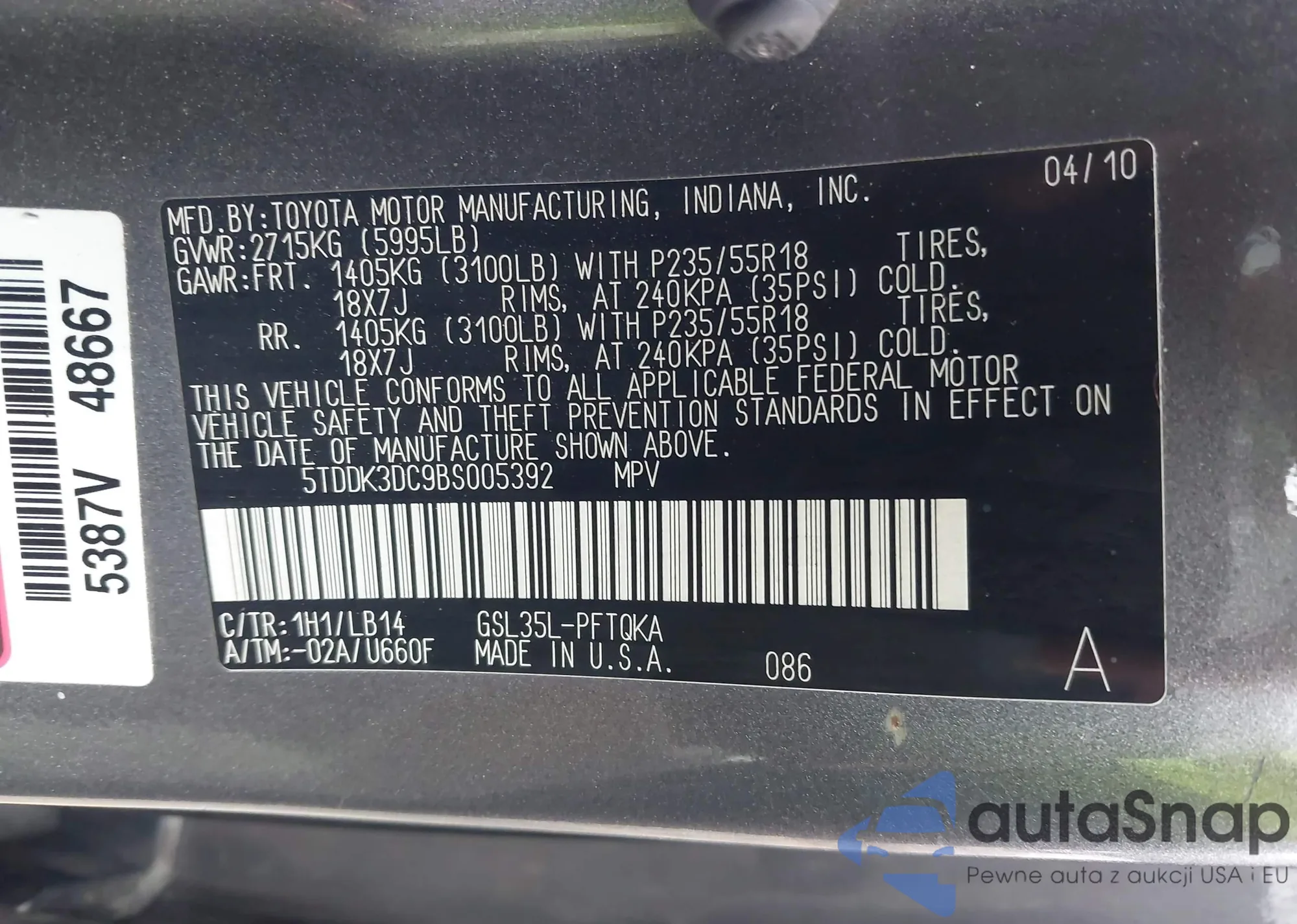 • VIN 5TDDK3DC9BS005392