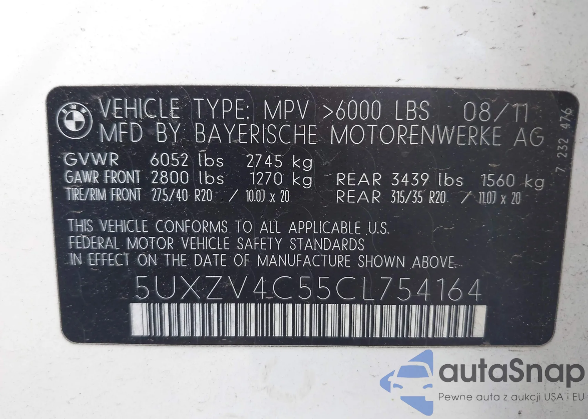 • VIN 5UXZV4C55CL754164