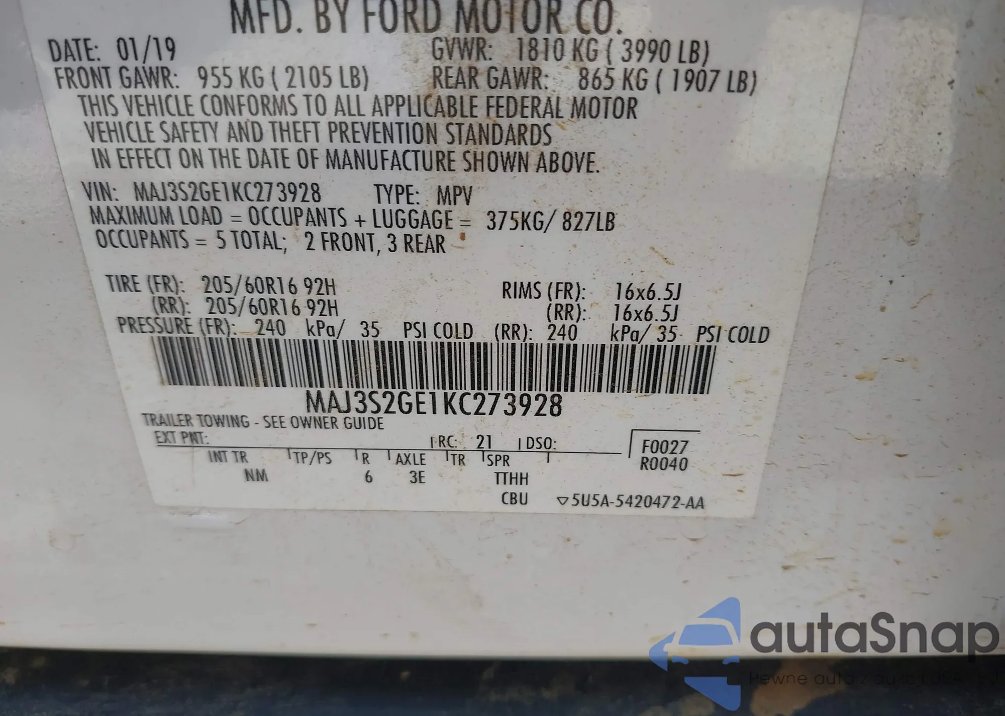 • VIN MAJ3S2GE1KC273928