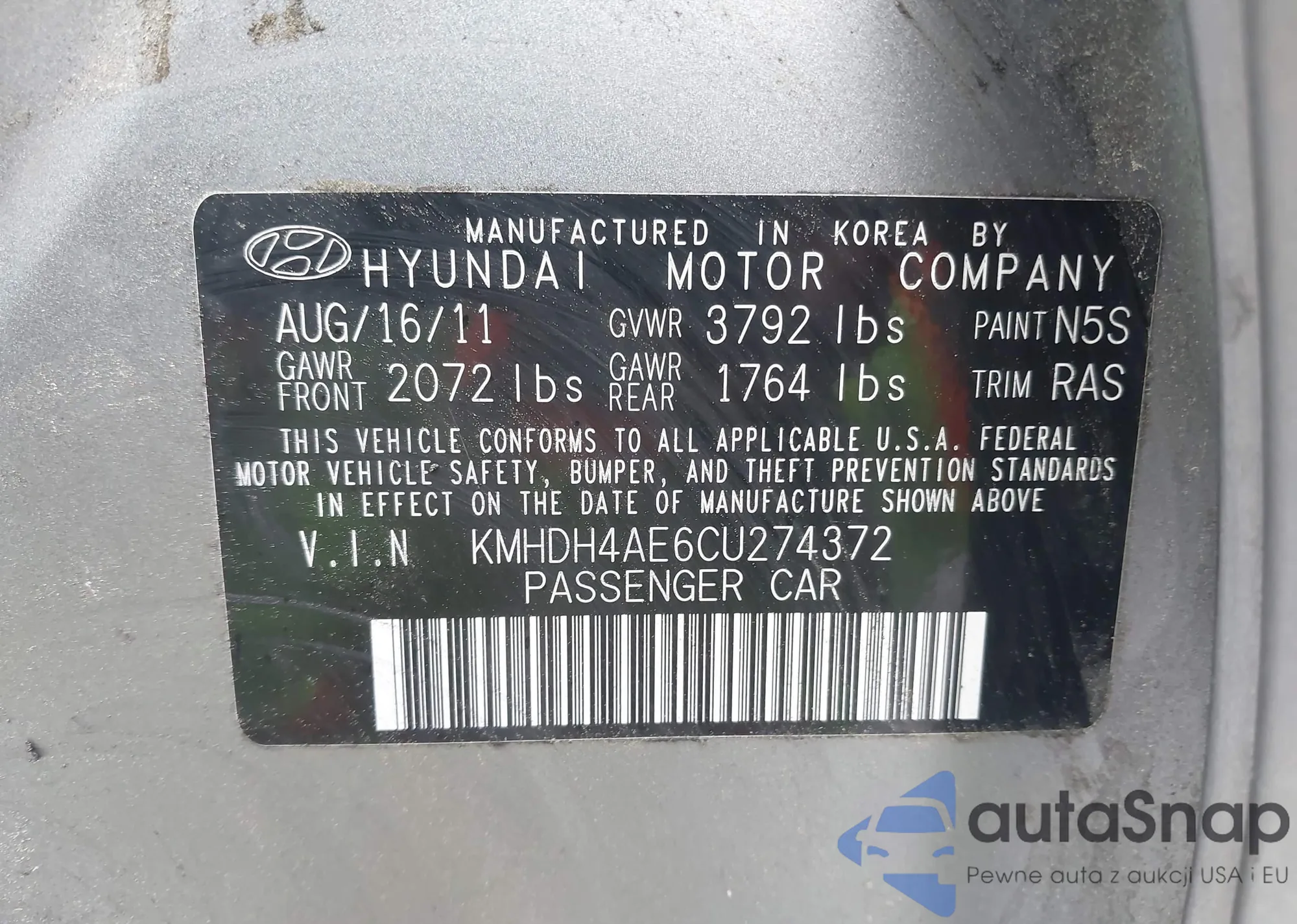 • VIN KMHDH4AE6CU274372