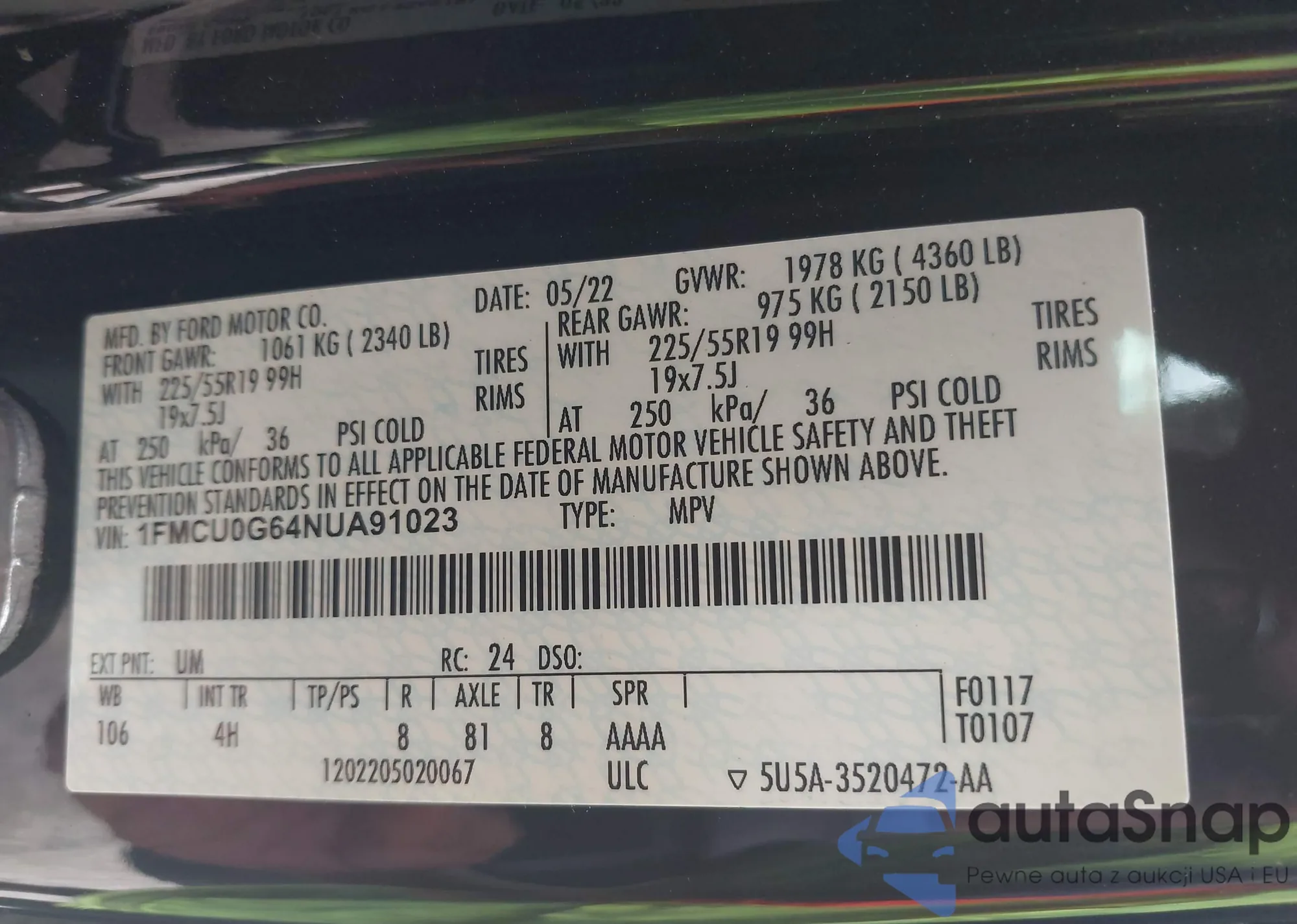 LOT: 42430228 VIN: 1FMCU0G64NUA91023