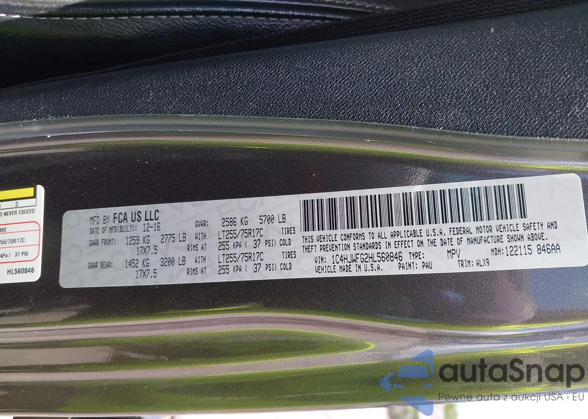 • VIN 1C4HJWFG2HL560846