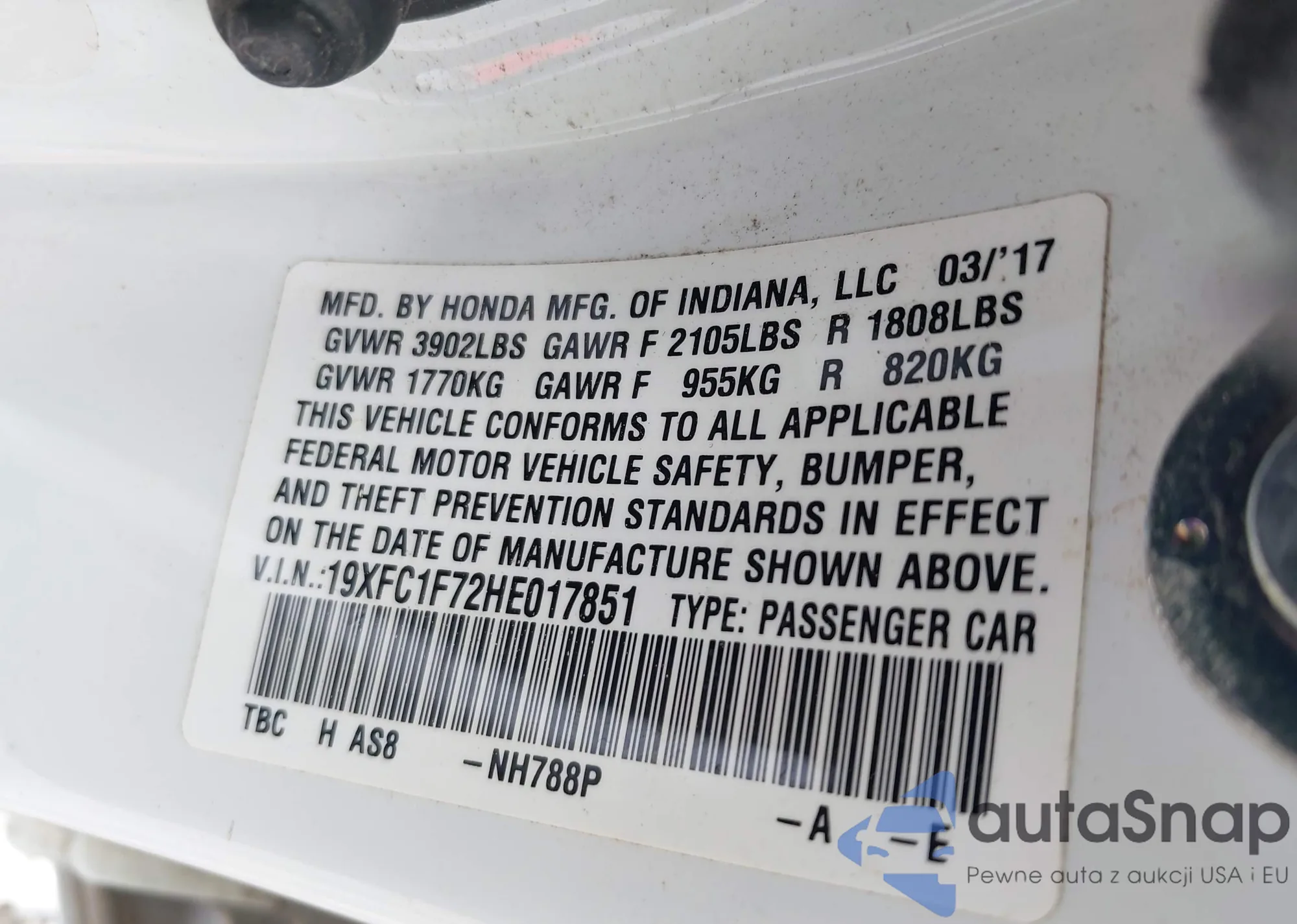 LOT: 42459349 VIN: 19XFC1F72HE017851