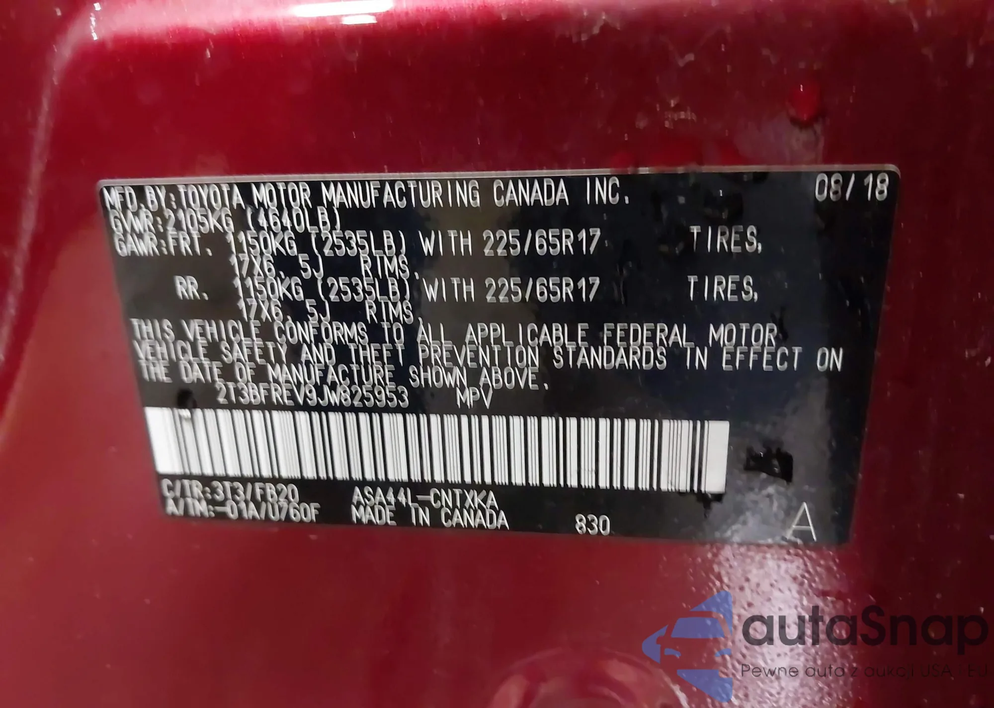 • VIN 2T3BFREV9JW825953