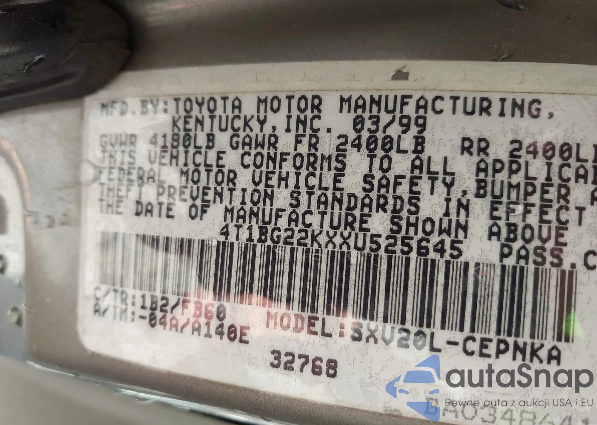 • VIN 4T1BG22KXXU525645