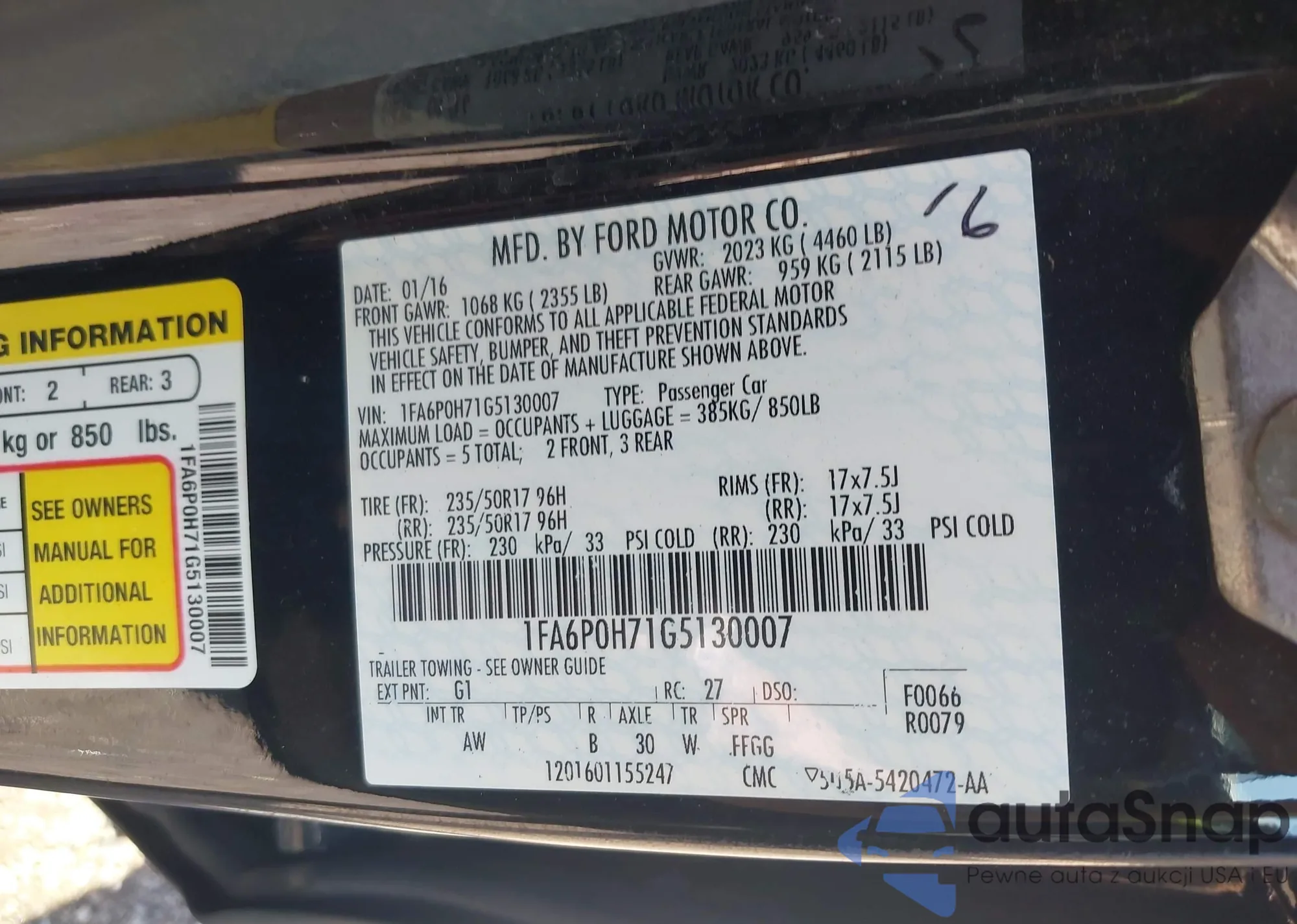 • VIN 1FA6P0H71G5130007