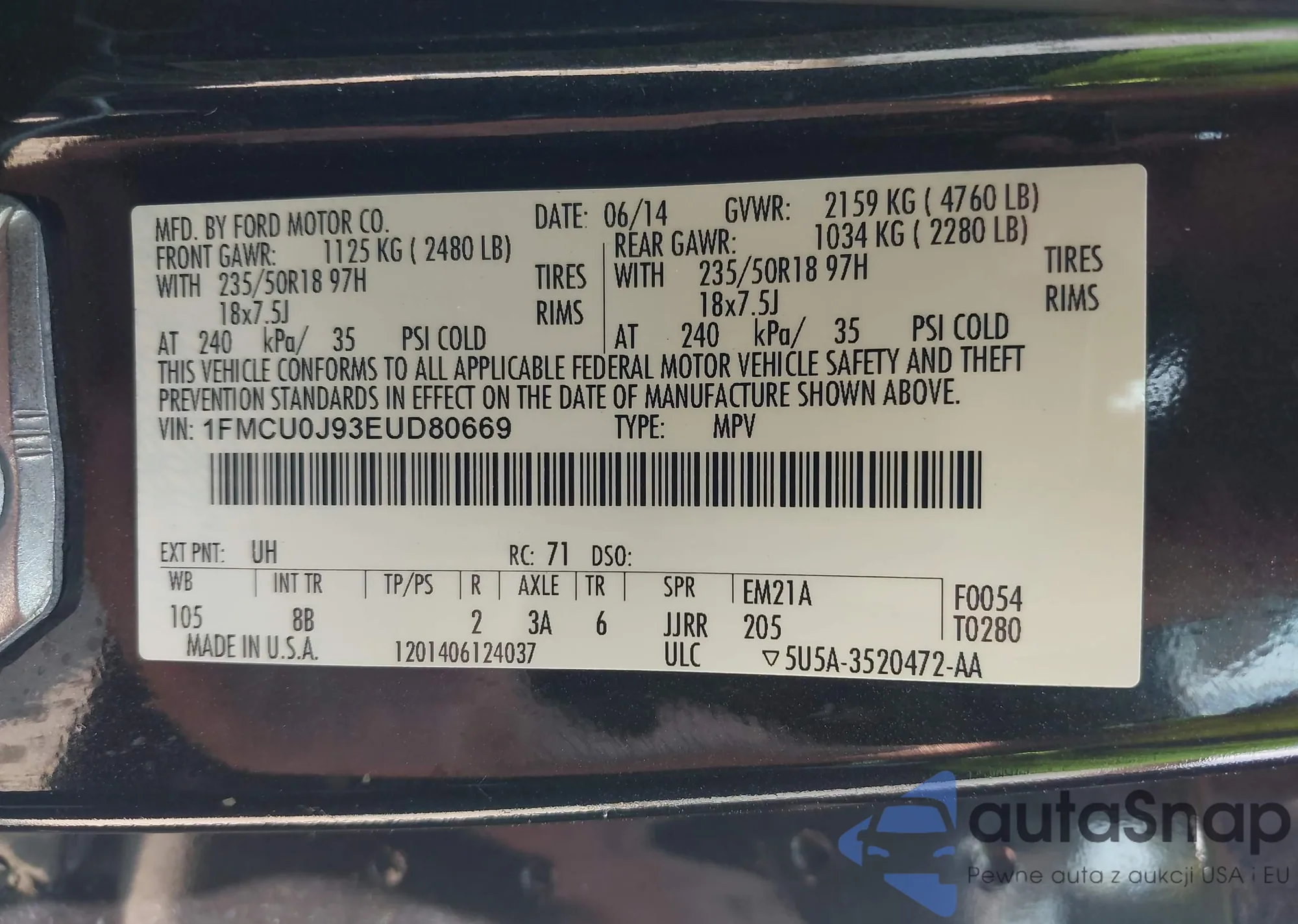 • VIN 1FMCU0J93EUD80669