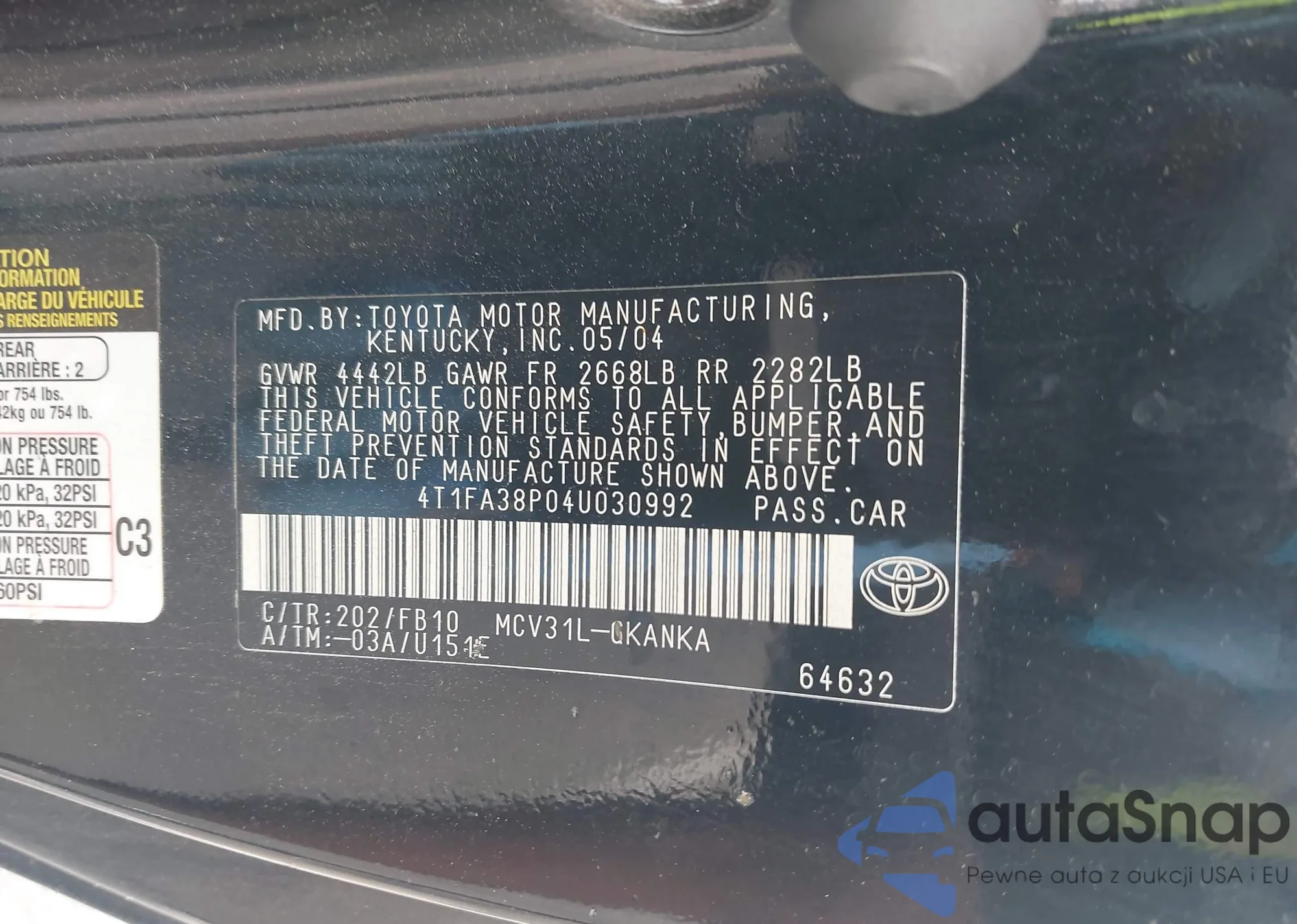 • VIN 4T1FA38P04U030992