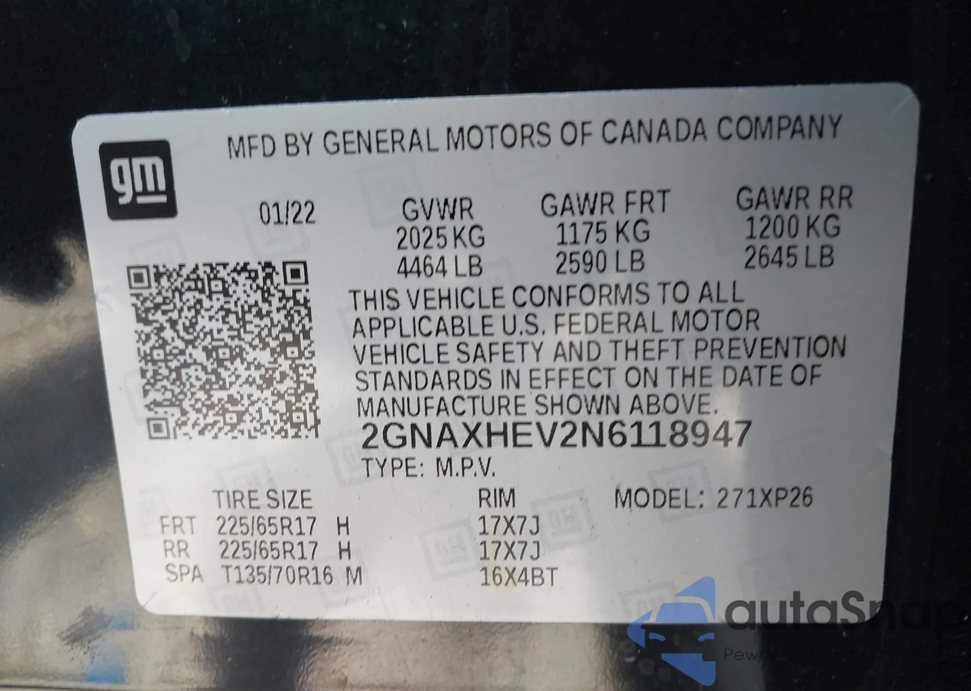 • VIN 2GNAXHEV2N6118947