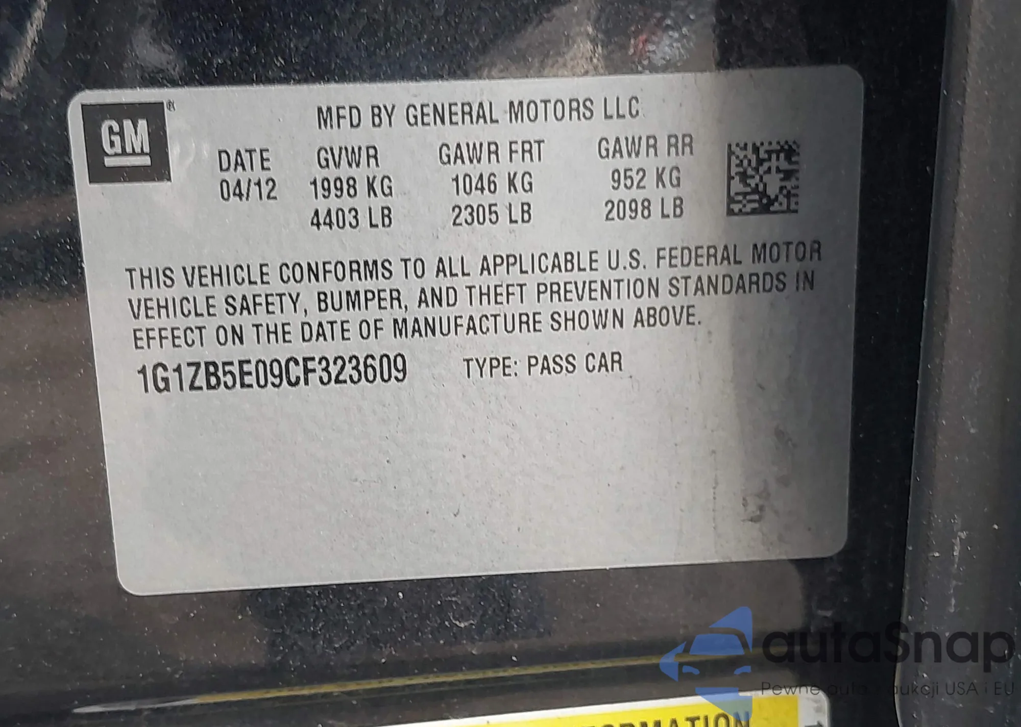• VIN 1G1JD5SB1L4122778
