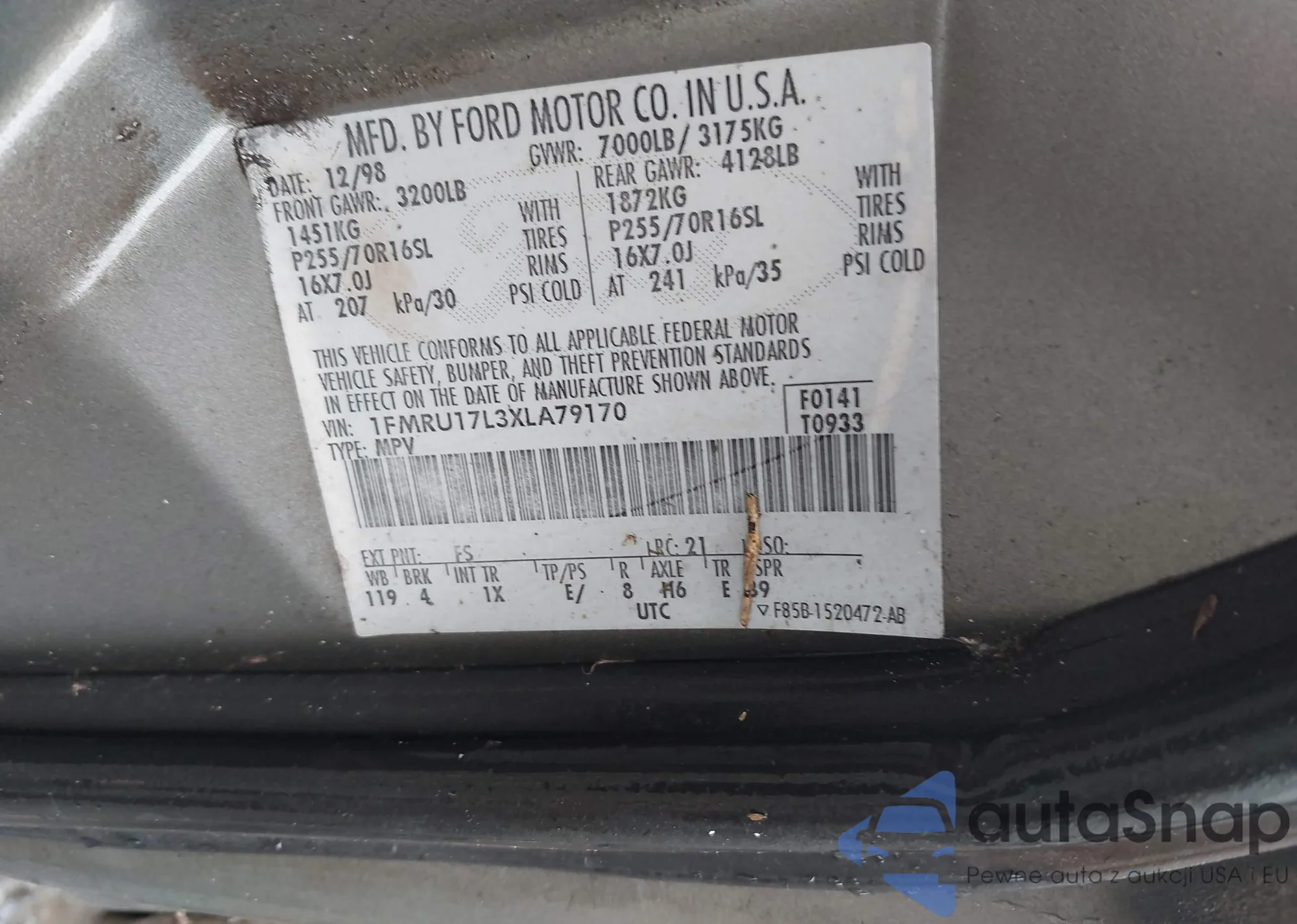 • VIN 1FMRU17L3XLA79170