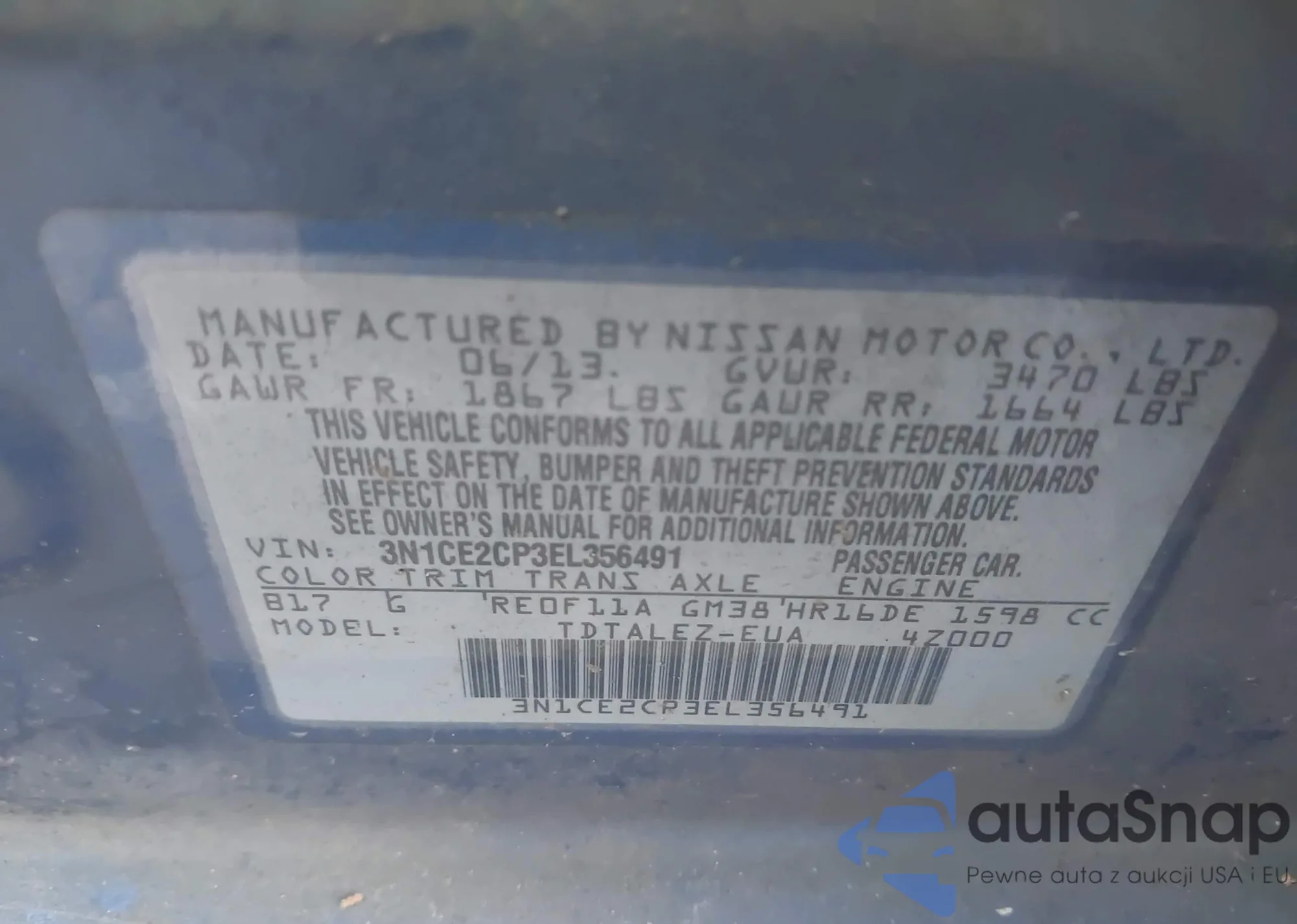 • VIN 3N1CE2CP3EL356491