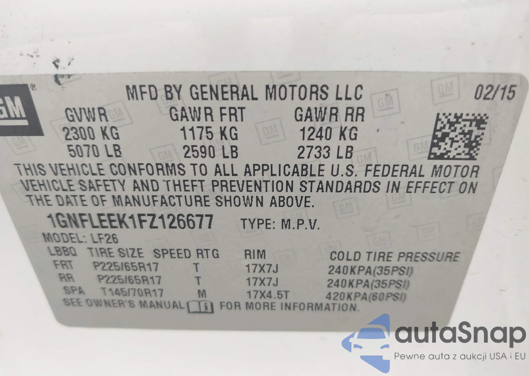 LOT: 42279988 VIN: 1GNFLEEK1FZ126677