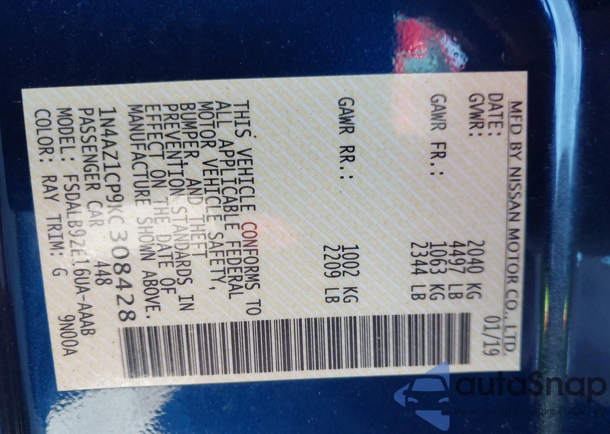 • VIN 7FARW1H80KE021493