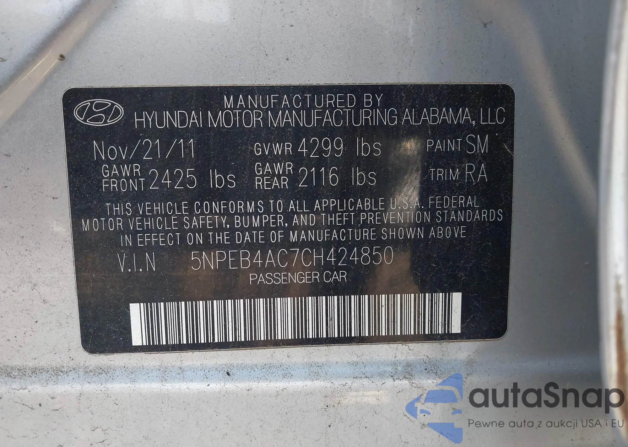• VIN 5NPEB4AC7CH424850