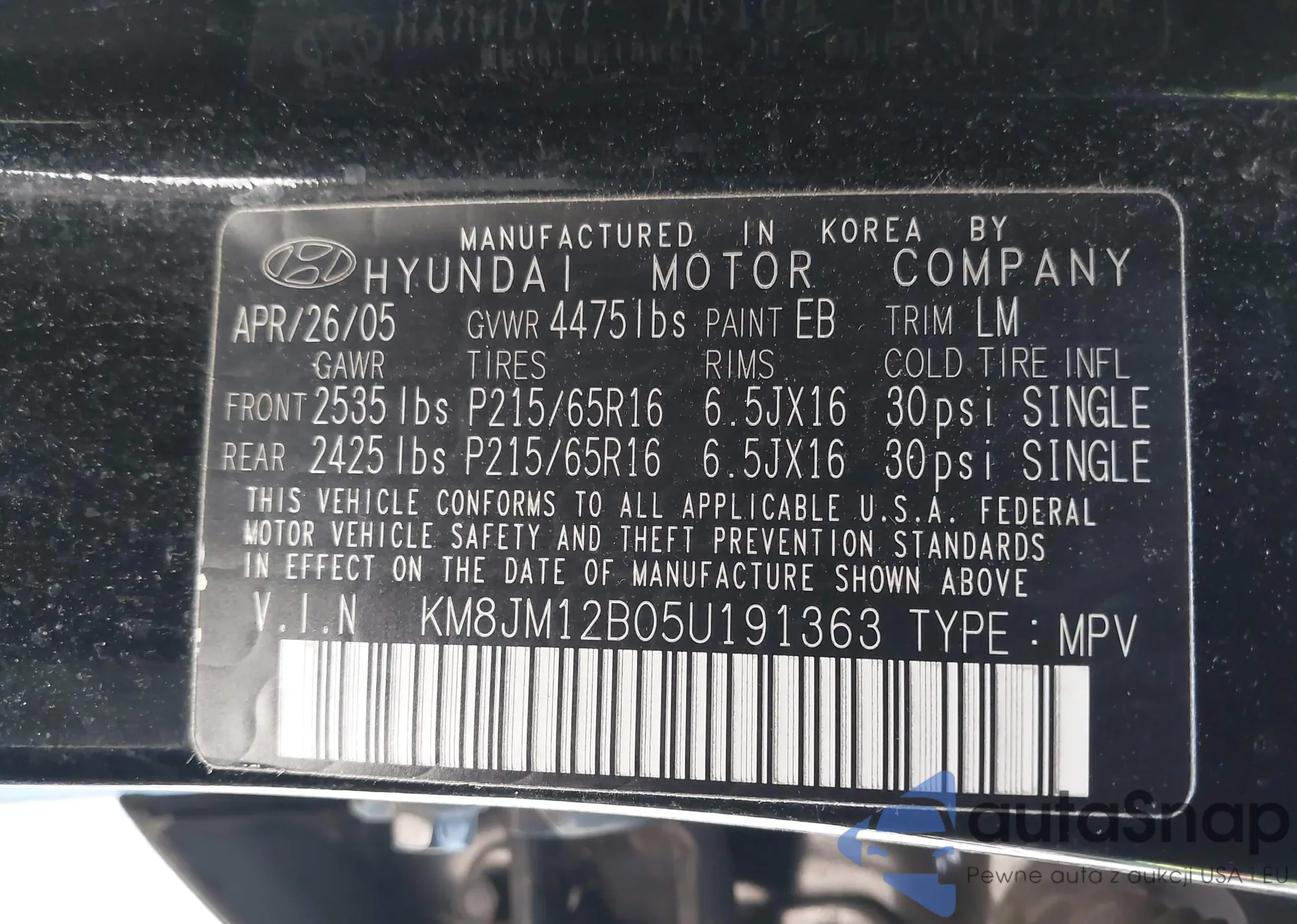 • VIN KM8JM12B05U191363
