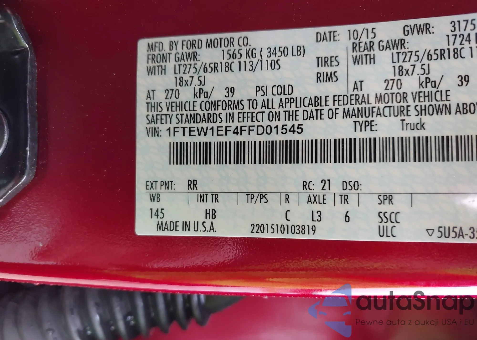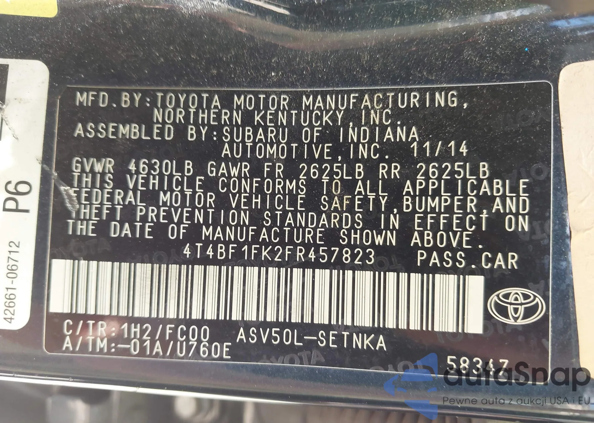 • VIN 4T4BF1FK2FR457823