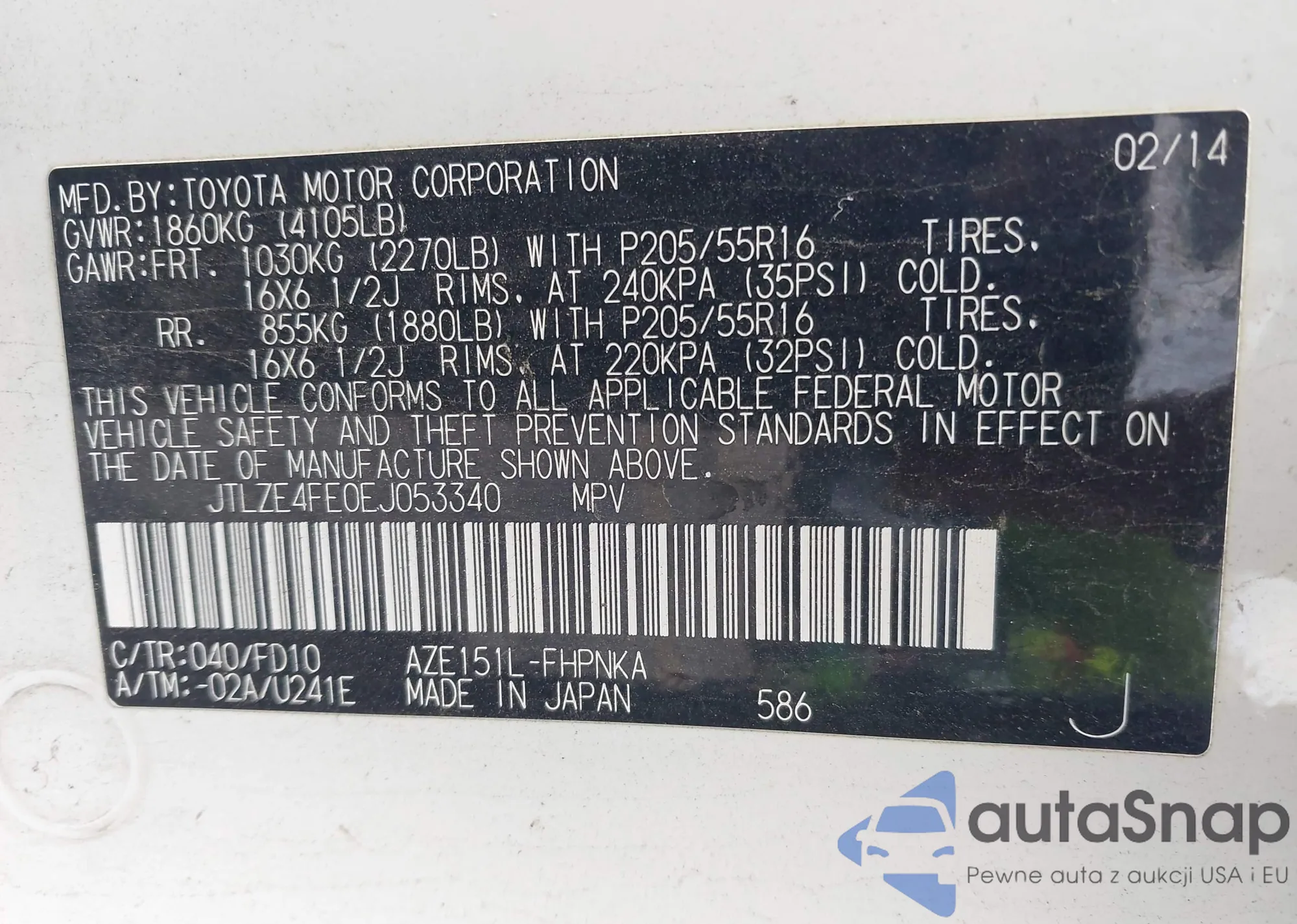 • VIN JTLZE4FE0EJ053340