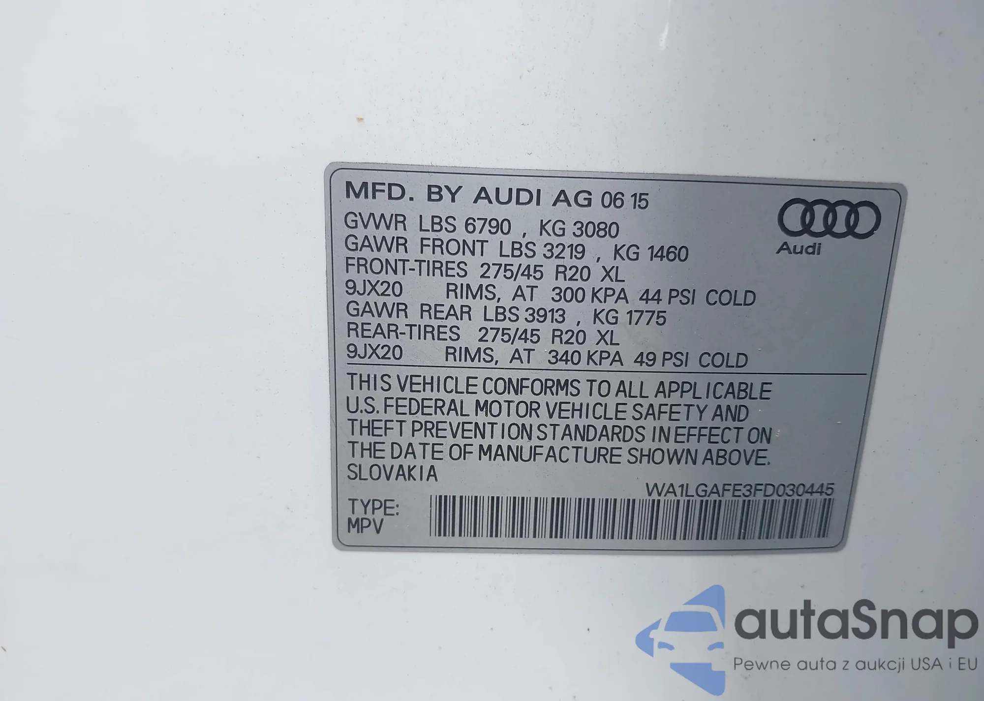 • VIN WAUBGAFC3CN006729