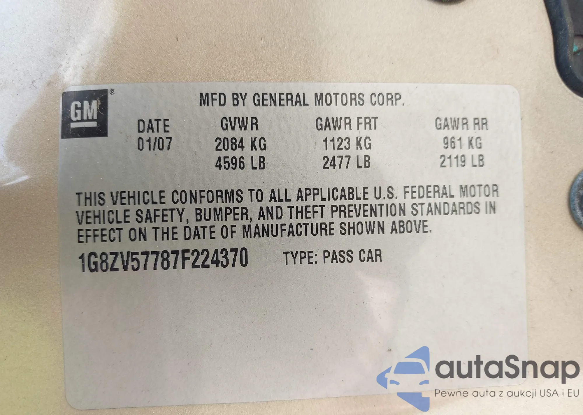 • VIN 1G1PF5S9XB7302419