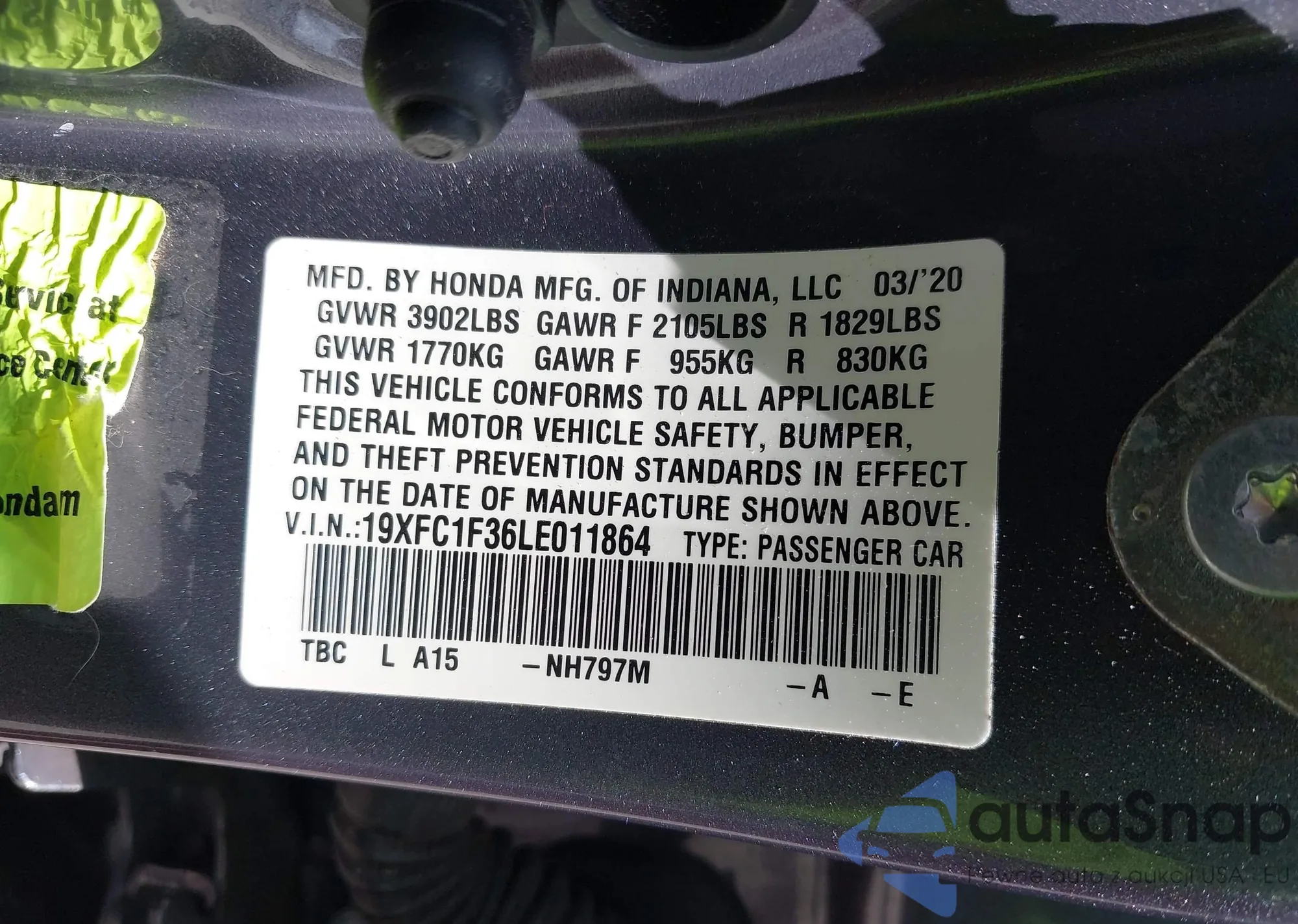 • VIN 19XFC1F36LE011864