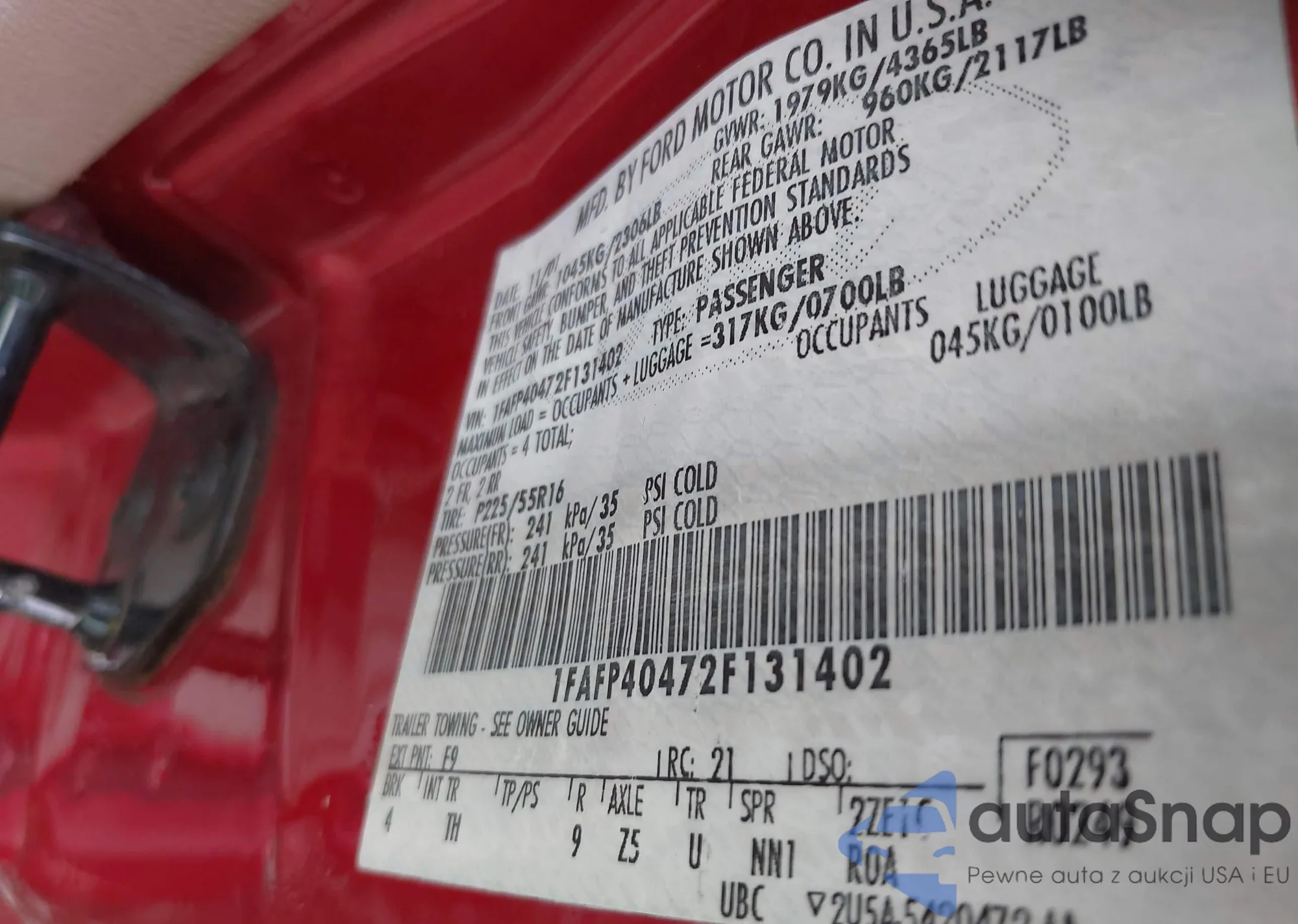 LOT: 42511271 VIN: 1FAFP40472F131402