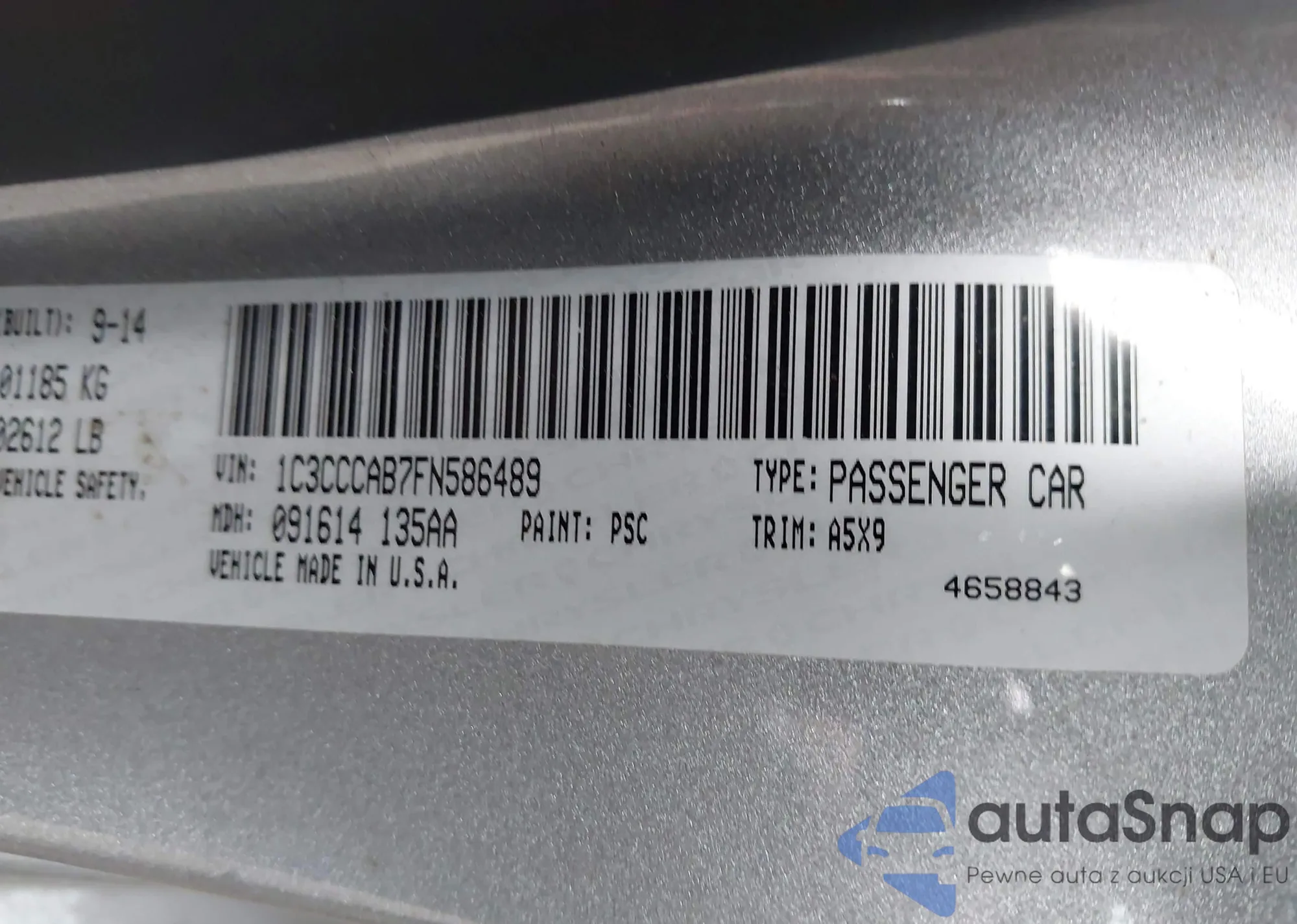 LOT: 42246903 VIN: 1C3CCCAB7FN586489