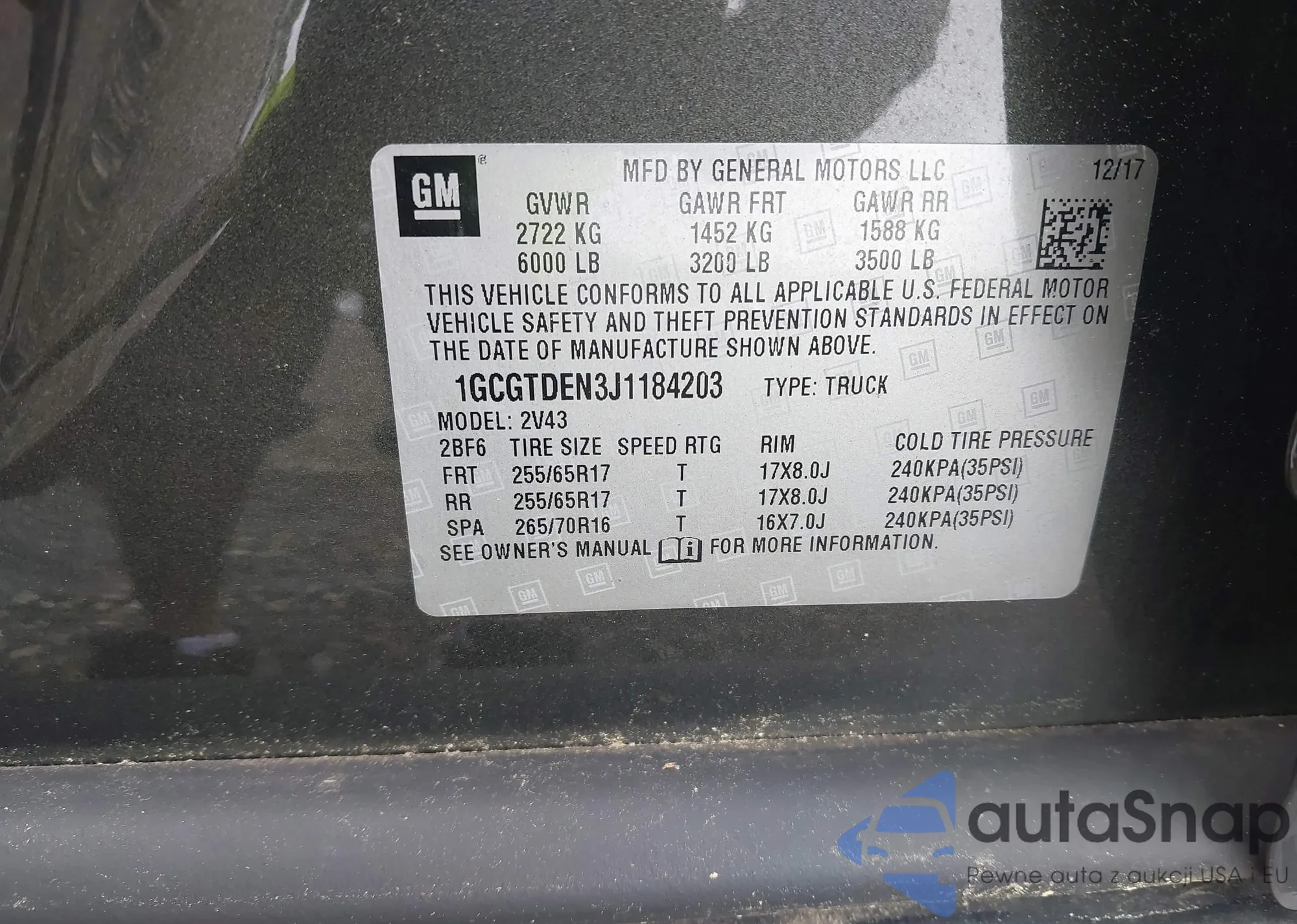 • VIN 1GCGTDEN3J1184203