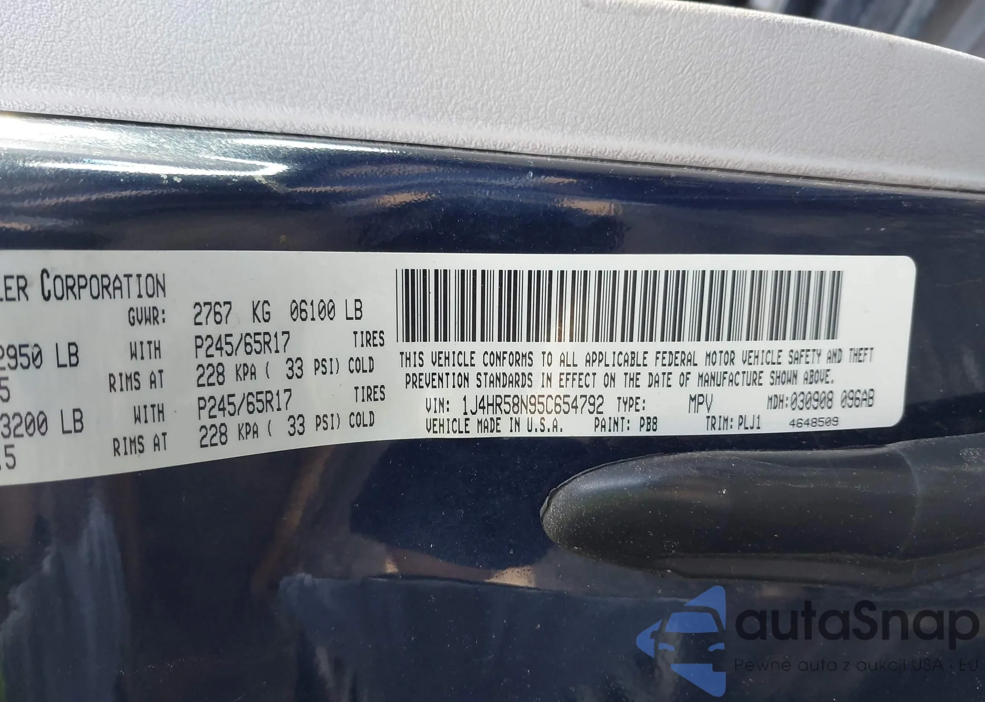 LOT: 42354250 VIN: 1J4HR58N95C654792