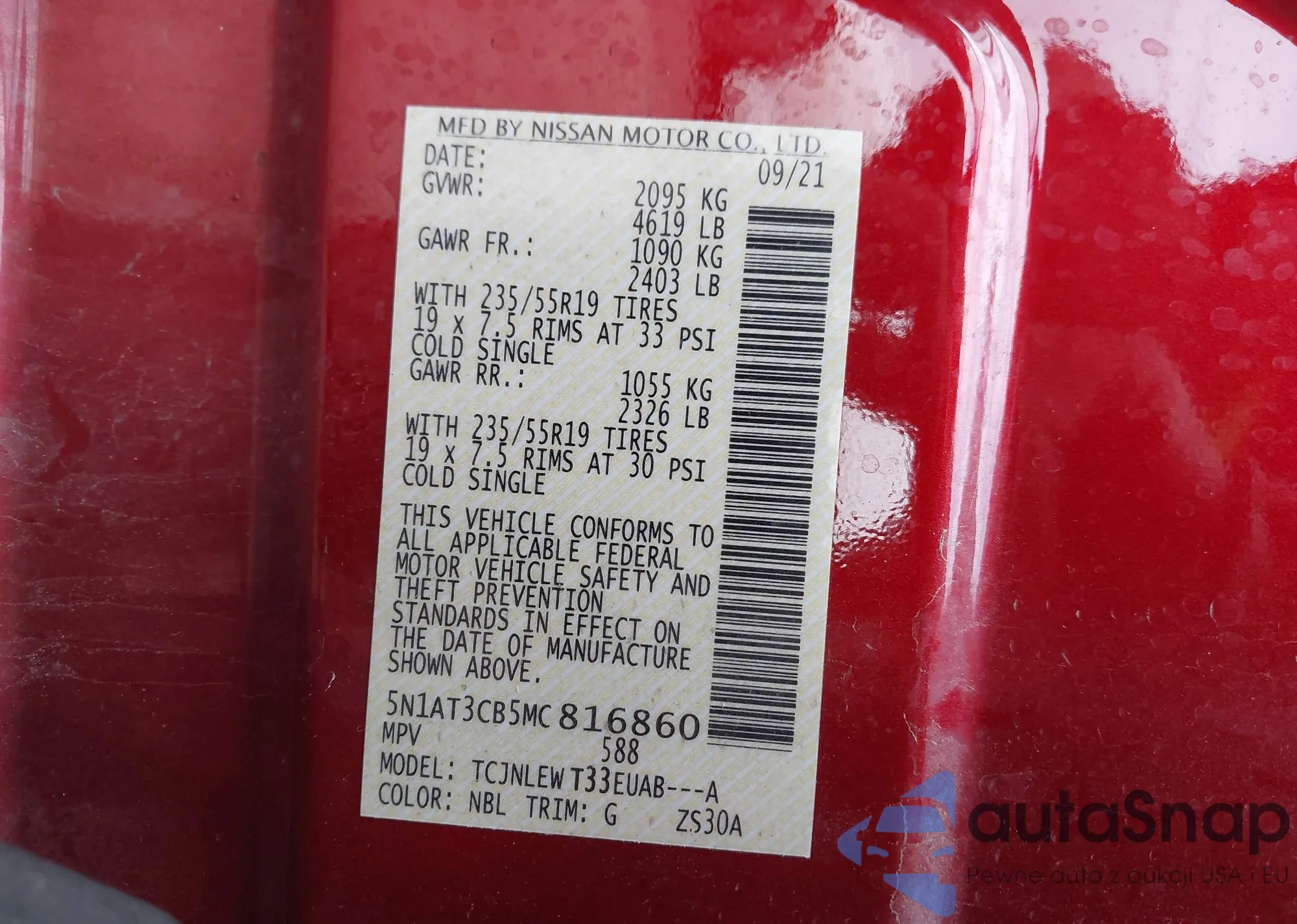 LOT: 42372558 VIN: 5N1AT3CB5MC816860