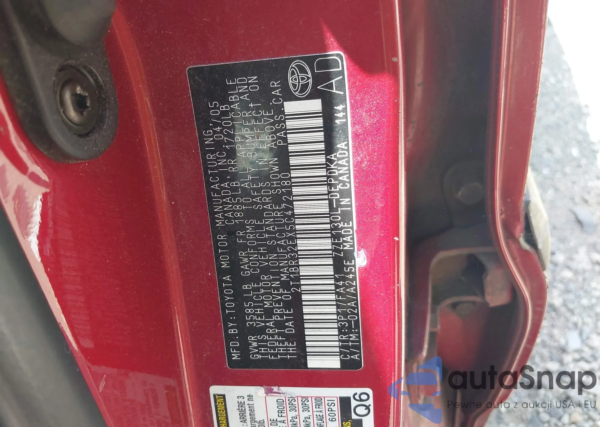 2005 Toyota Corolla Ce z USA, uszkodzony, nr VIN 2T1BR32EX5C472180