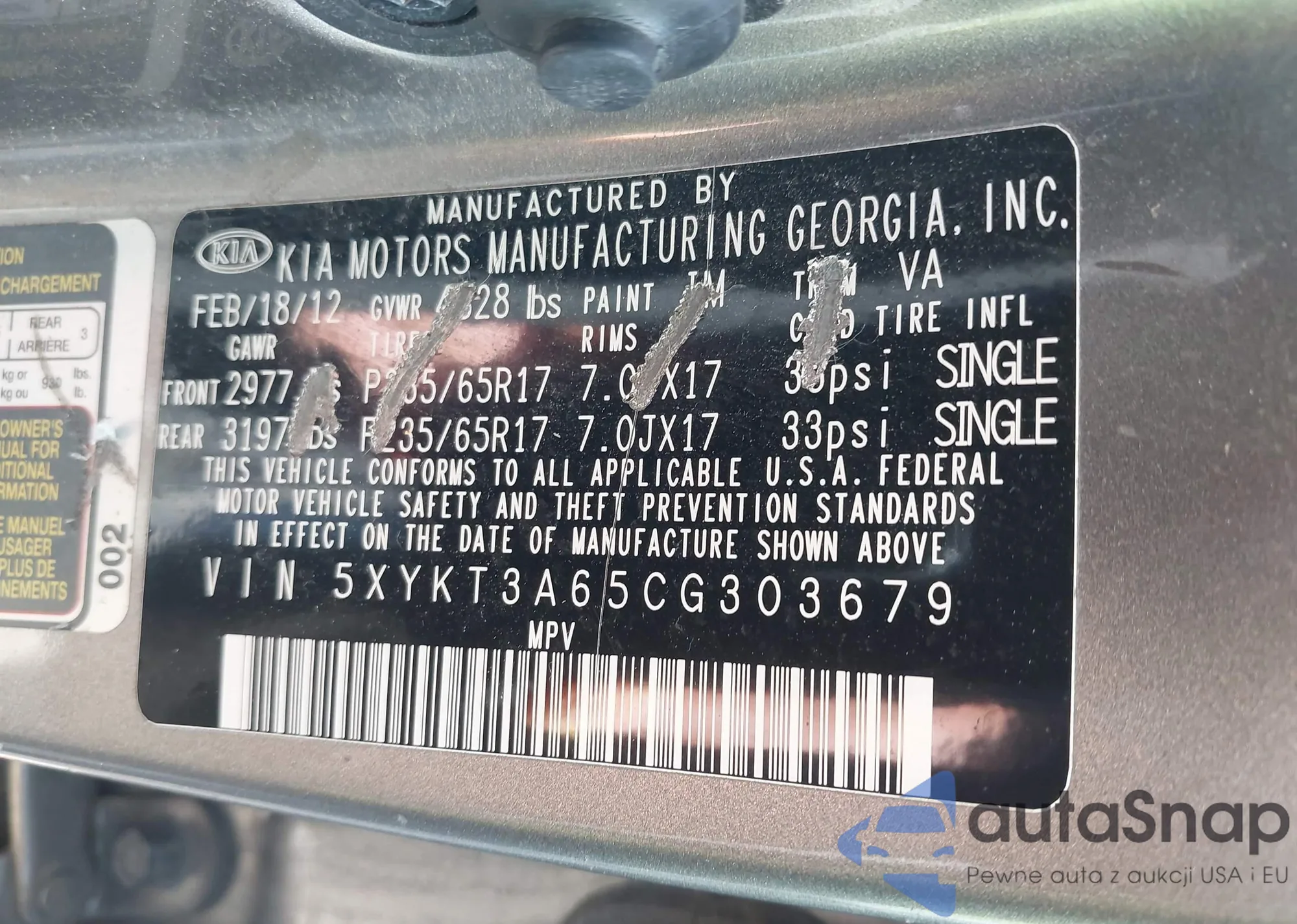 • VIN 5XYKT3A65CG303679
