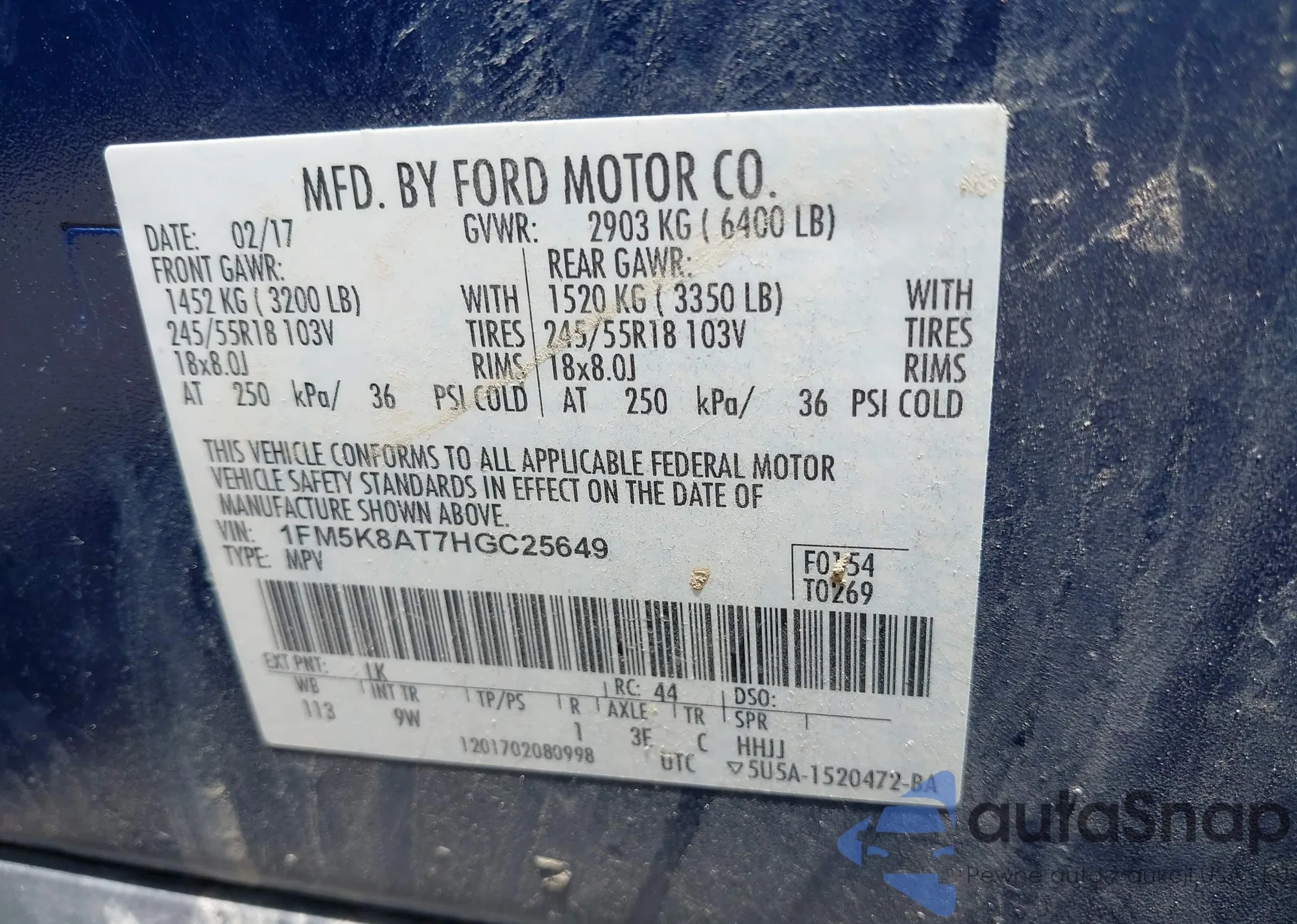 • VIN 1FM5K8AT7HGC25649