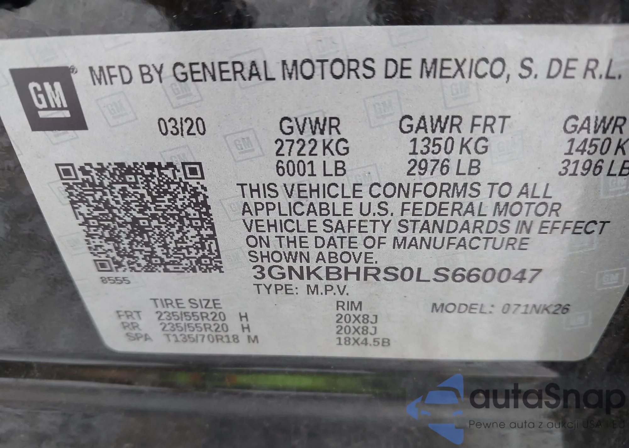 • VIN 3GNKBHRS0LS660047