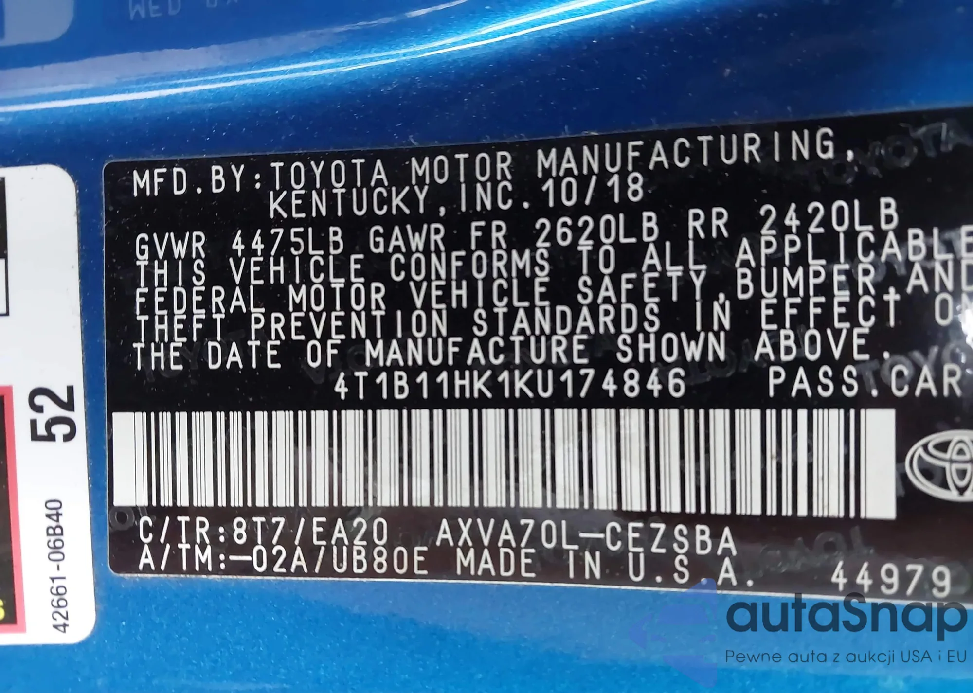LOT: 42226177 VIN: 1G1ZD5ST4JF164097