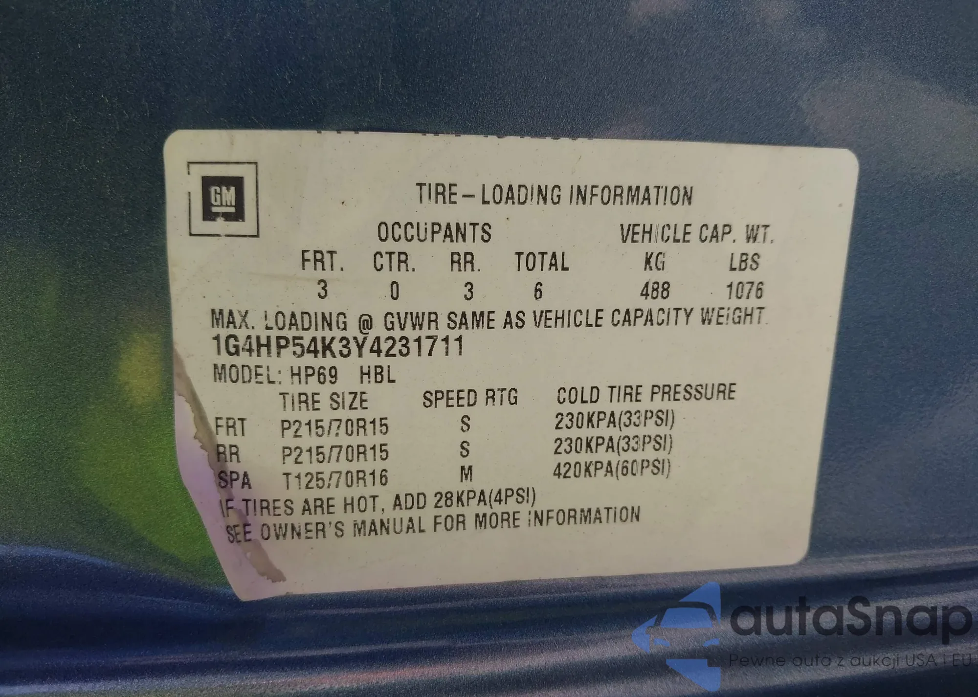 • VIN 1G8AK52F63Z161007