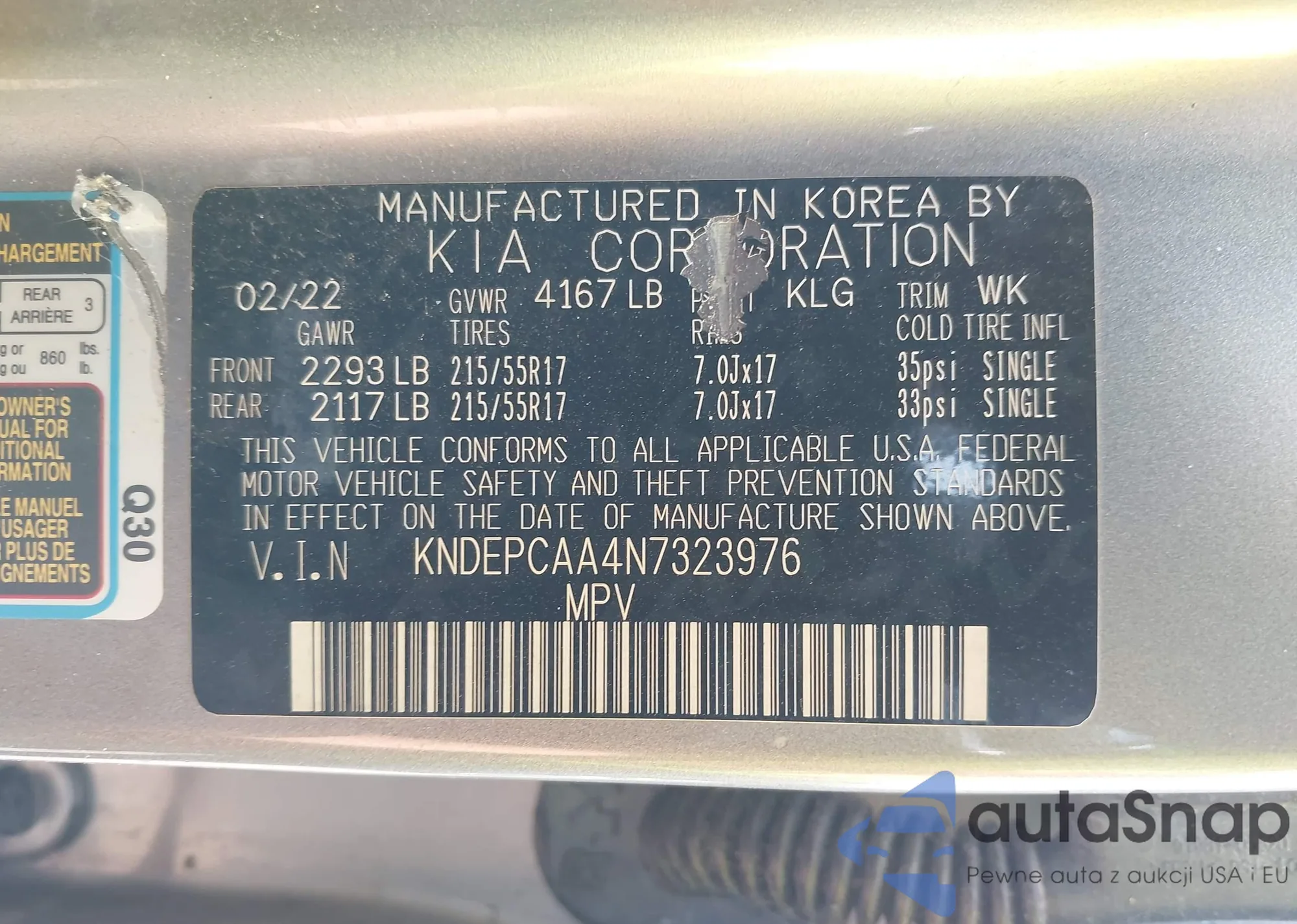 LOT: 42283532 VIN: KNDEPCAA4N7323976