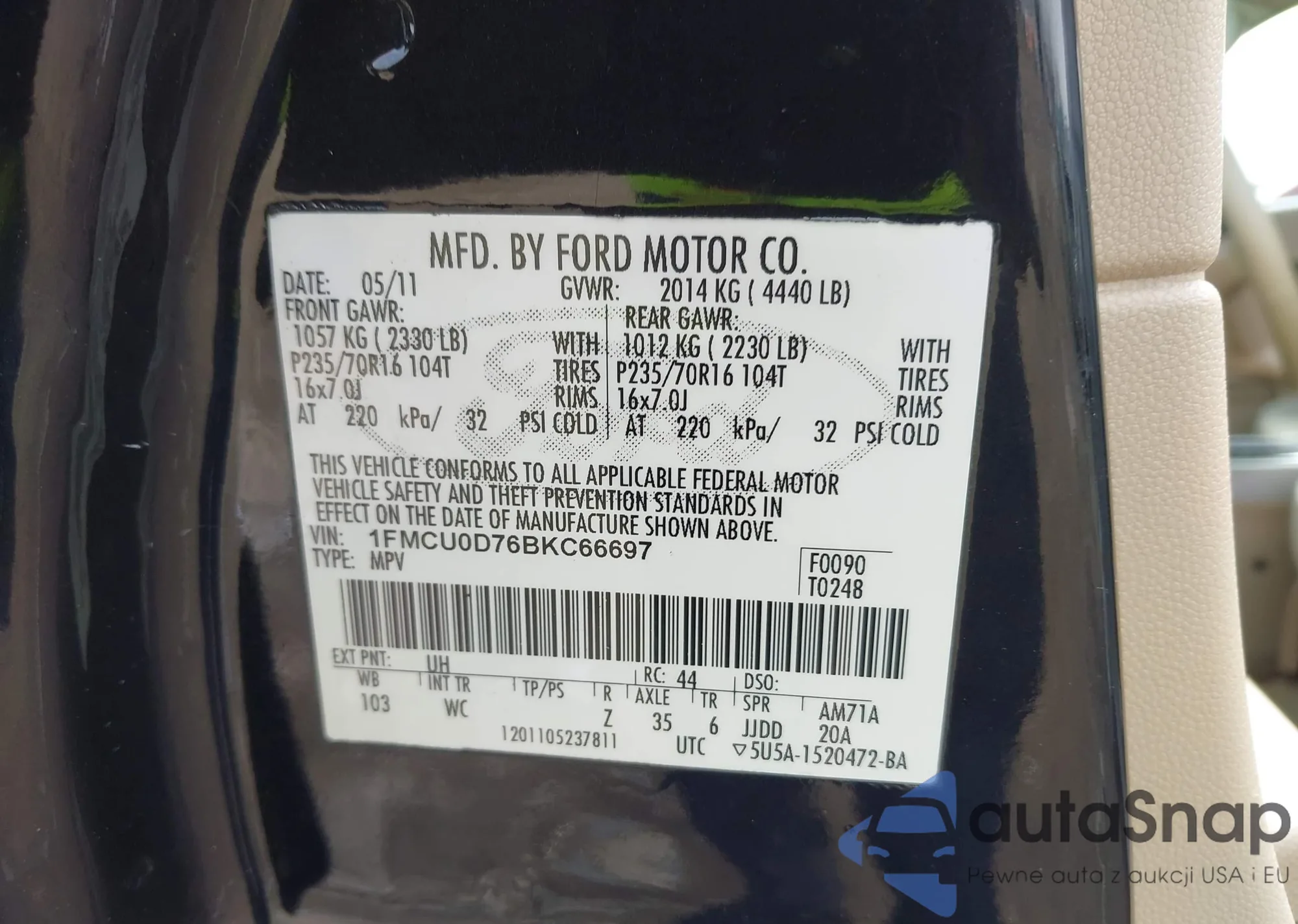 • VIN 1FMCU0D76BKC66697
