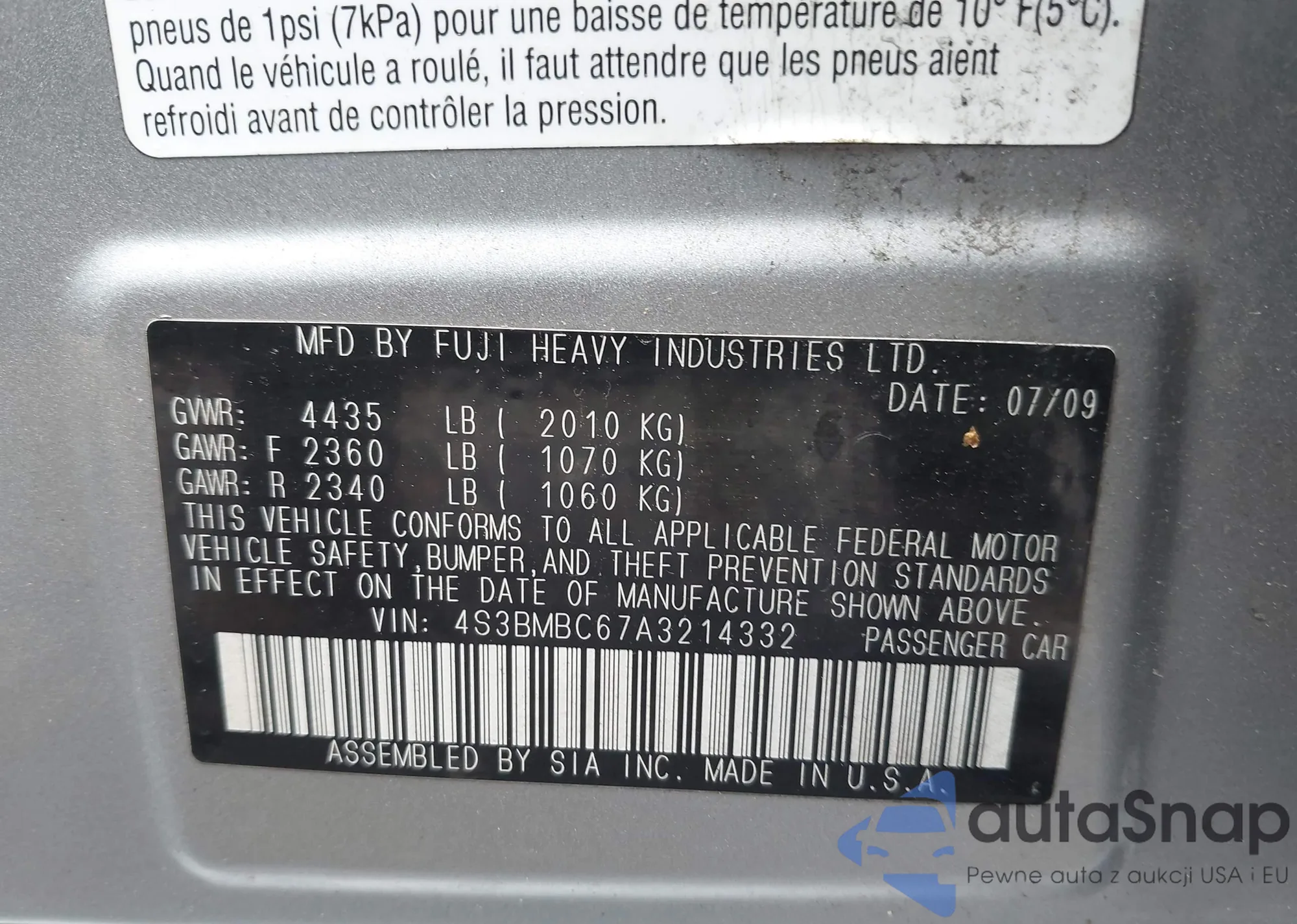 • VIN 4S3BMBC67A3214332