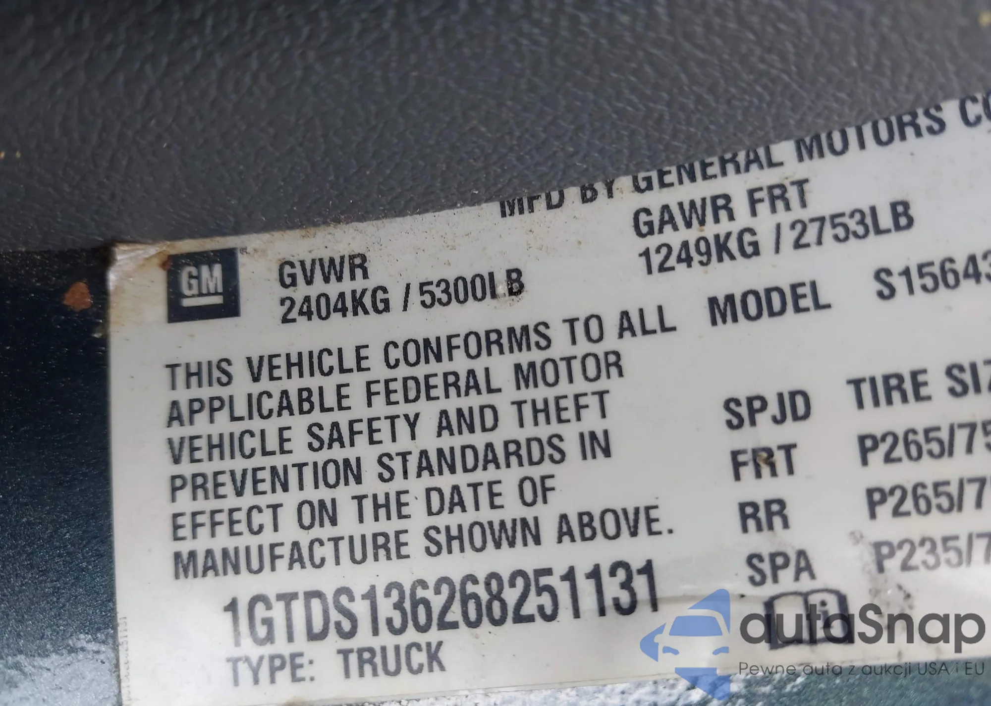 • VIN 1GTDS136268251131