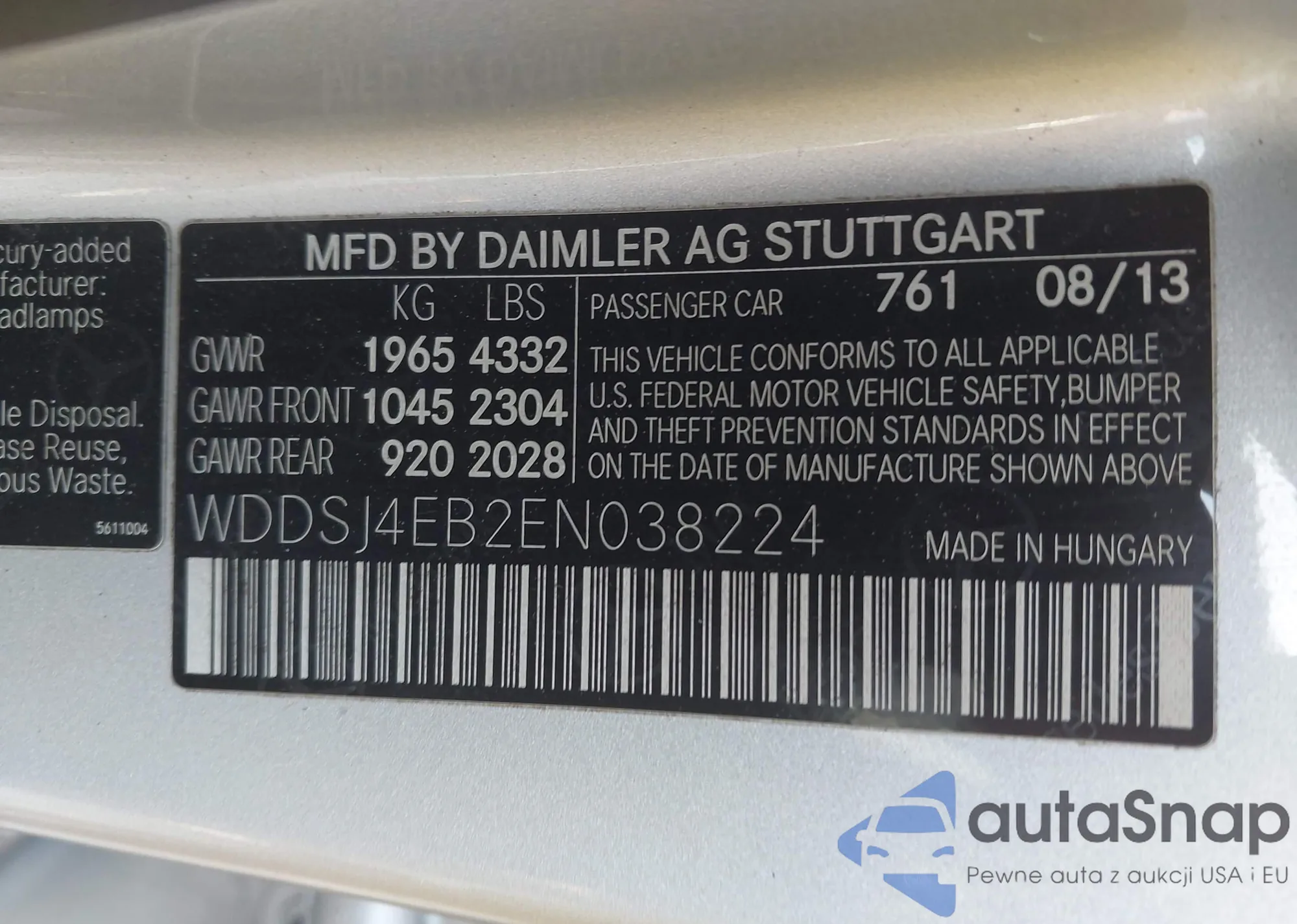 • VIN WDDSJ4GB0FN194180
