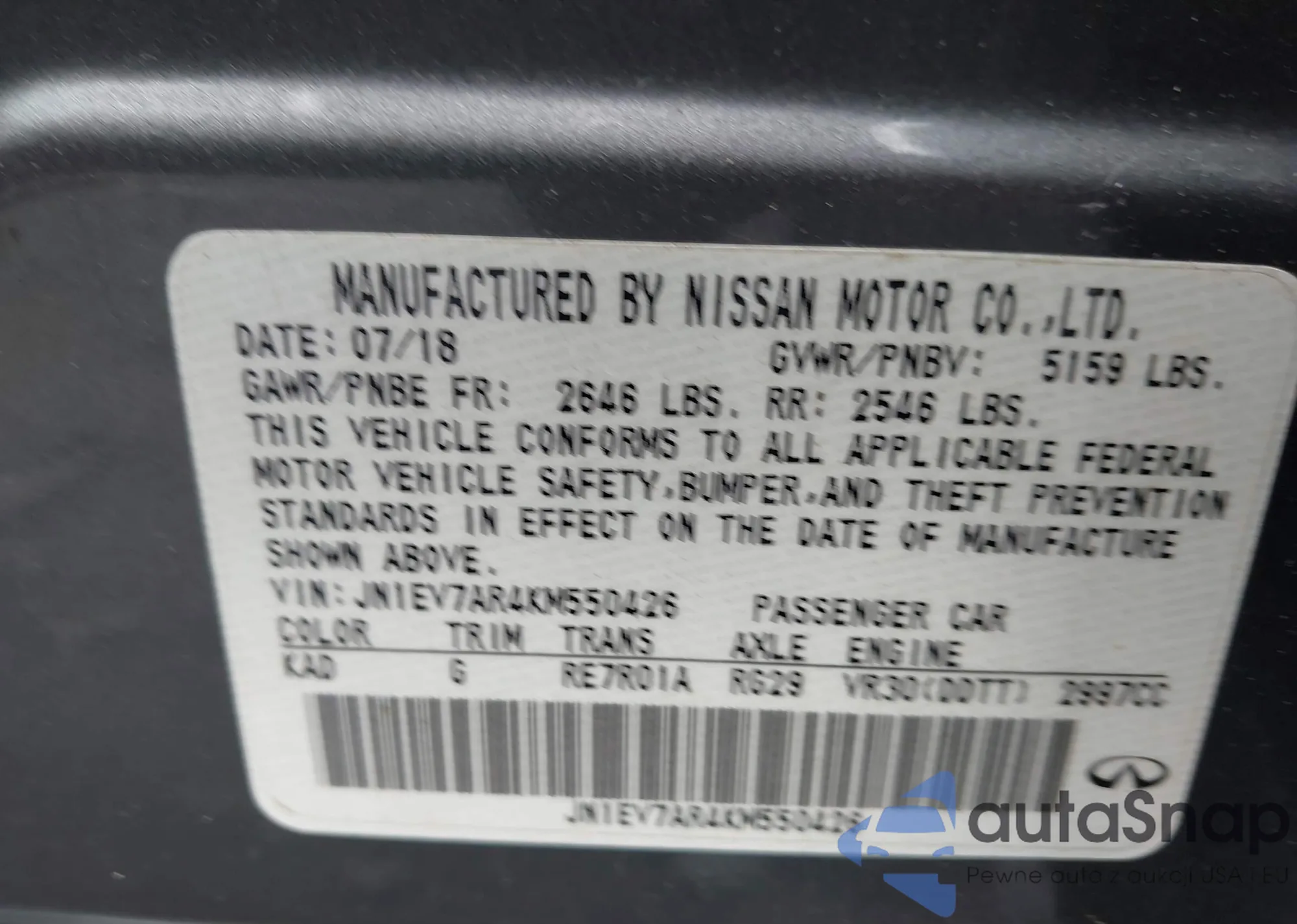 LOT: 42463553 VIN: JN1EV7AR4KM550426