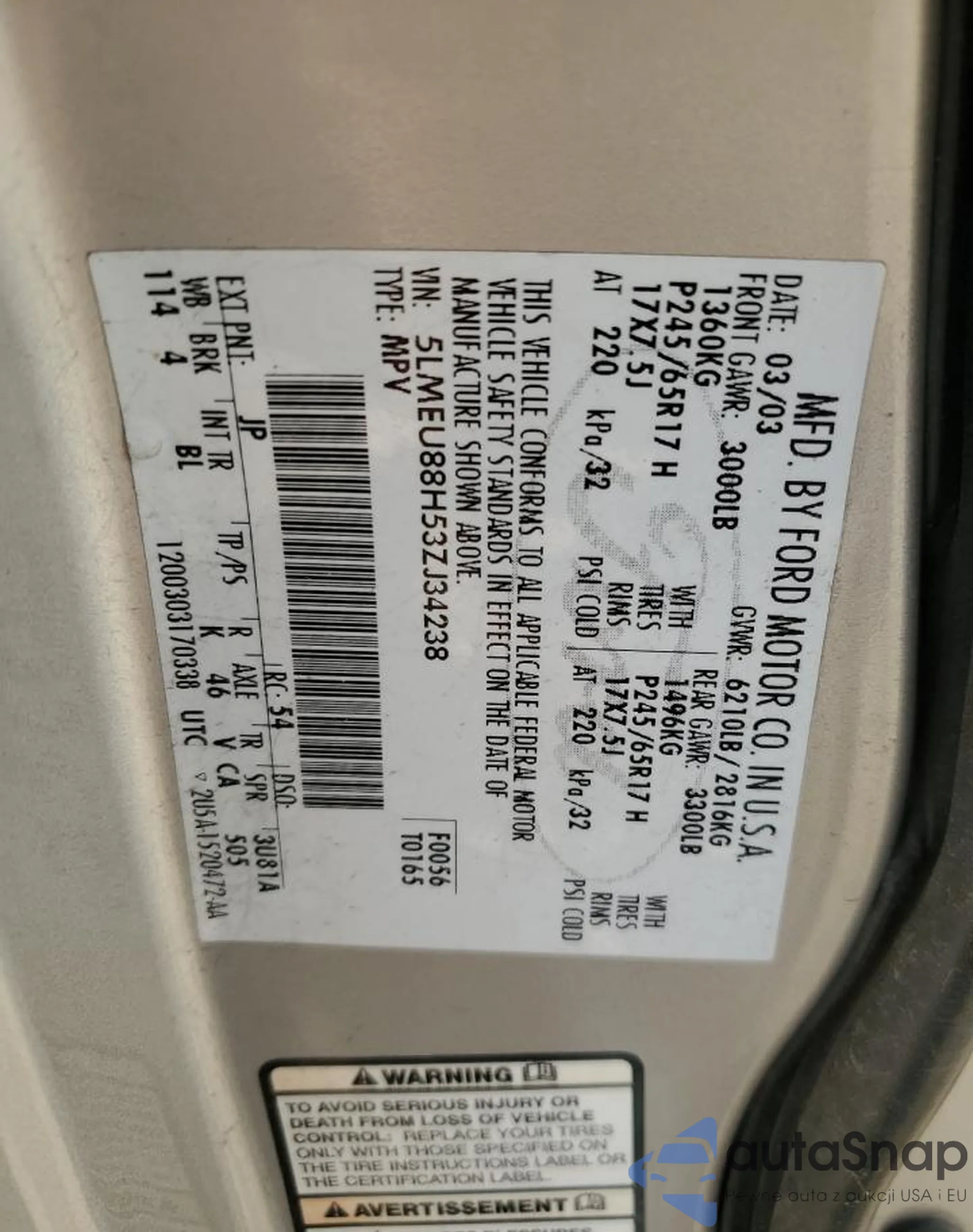 • VIN 5LMEU88H53ZJ34238