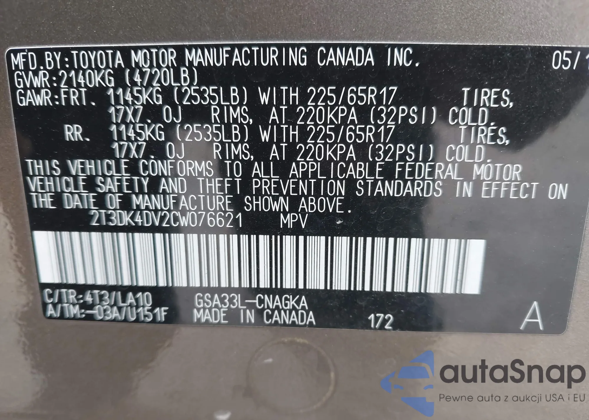 LOT: 42633819 VIN: 2T2HZMAA8LC155912
